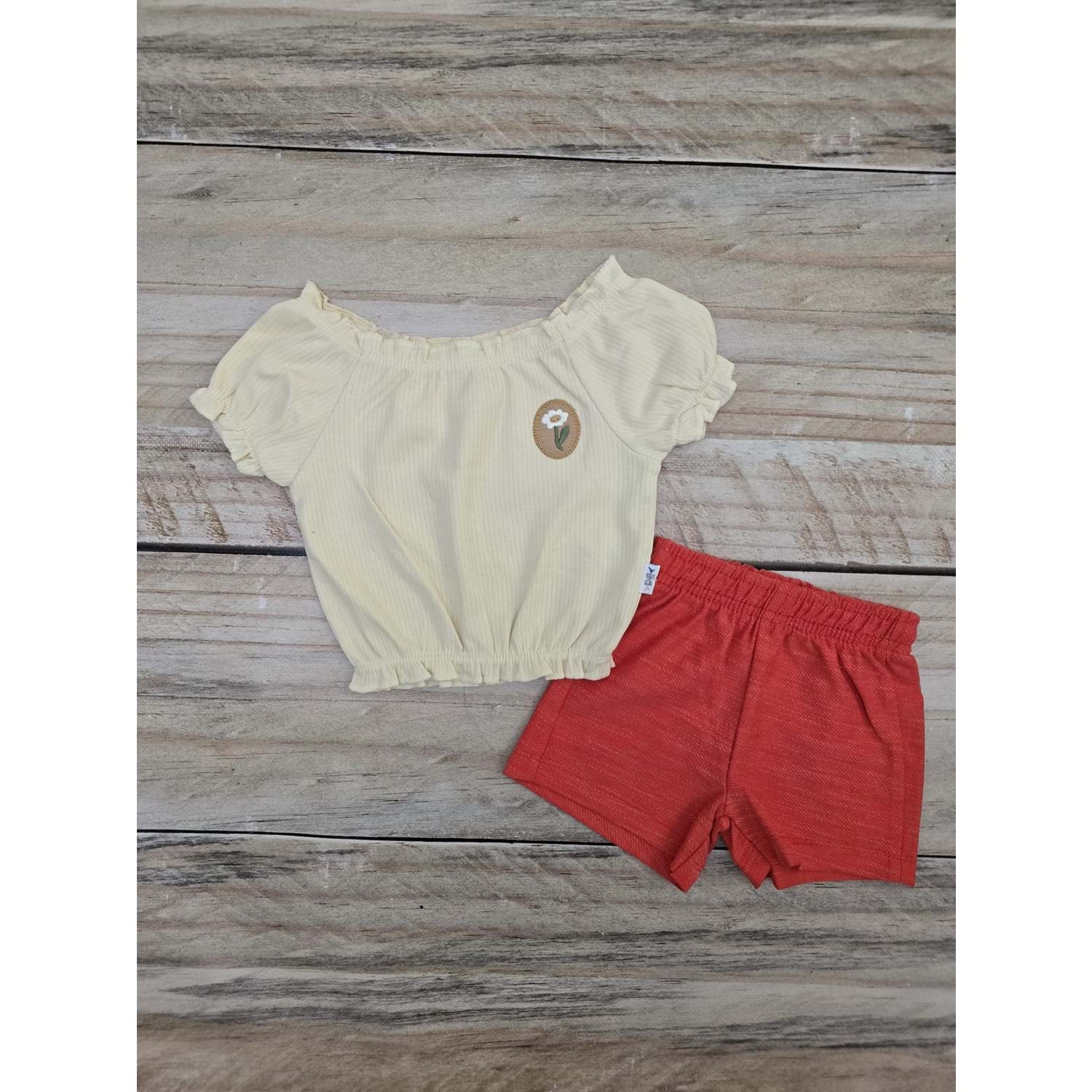 (9-24) Ay NAZAR BEBE PAPATYA NAKIŞLI ŞORTLU TAKIM - KREM - 9 AYLIK
