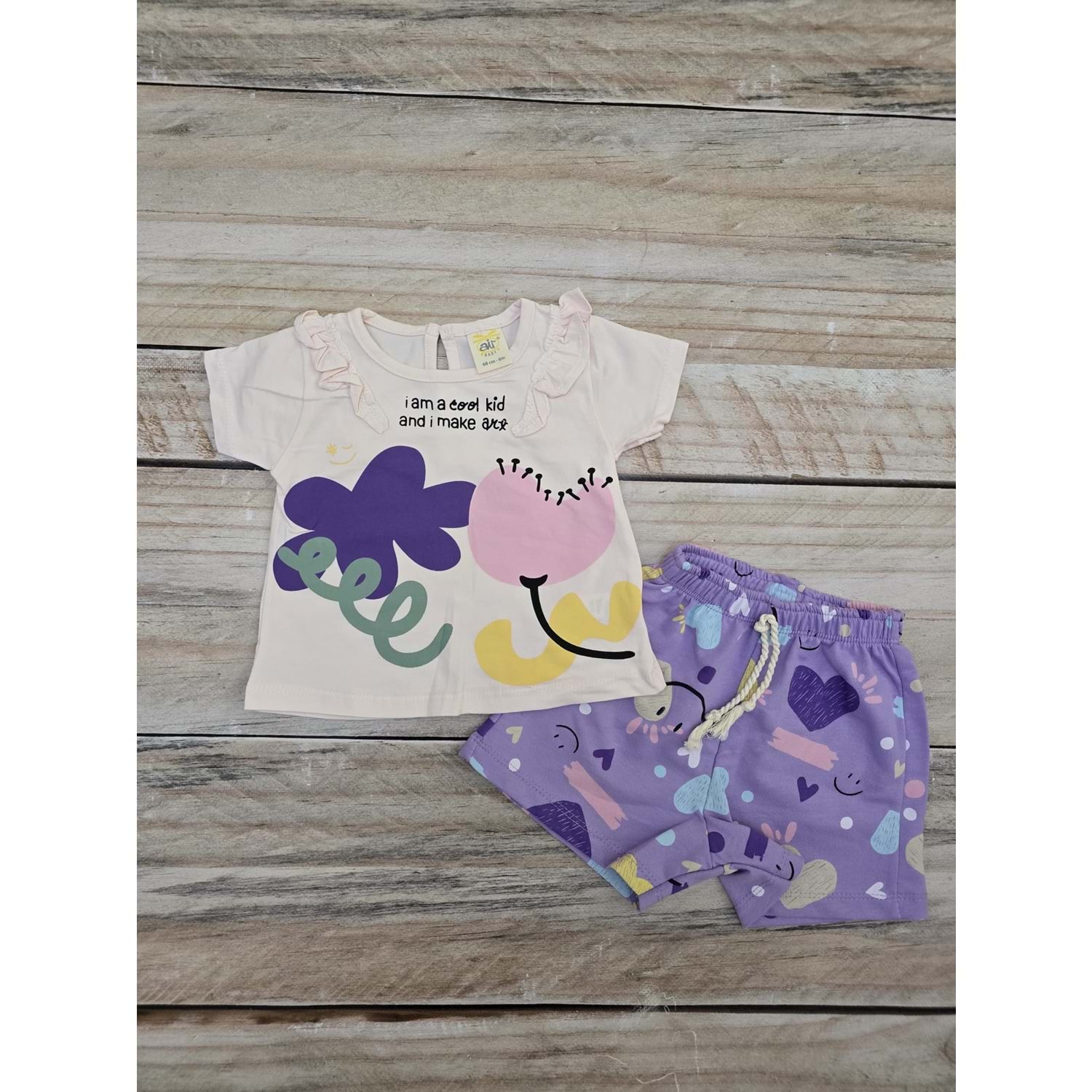 (6-18) Ay AİR BABY COOL KİD BASKILI ŞORTLU TAKIM - MOR - 6 AYLIK