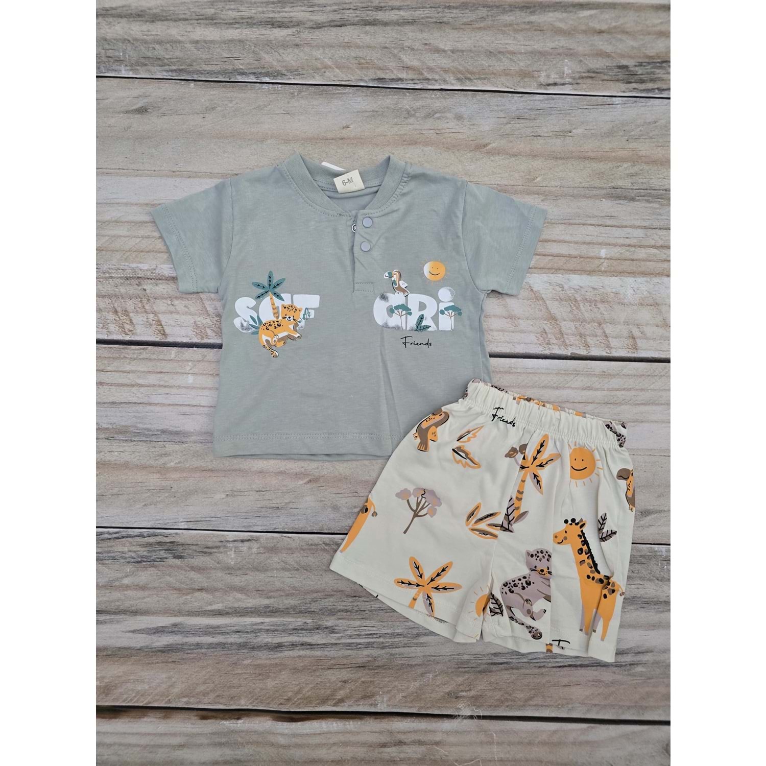 (6-18) Ay AİR BABY GRİ FRIENDS BASKILI ŞORTLU TAKIM - GRİ - 6 AYLIK