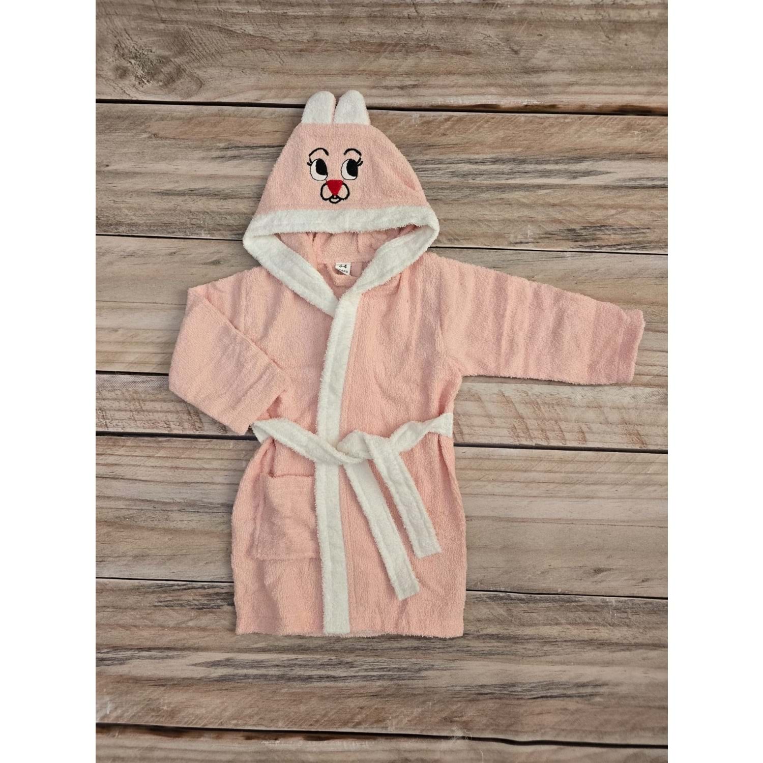 (3-12) Yaş SEVİMLİ YÜZ ŞAPKALI ÇOCUK BORNOZU - PEMBE - 9-10 YAŞ