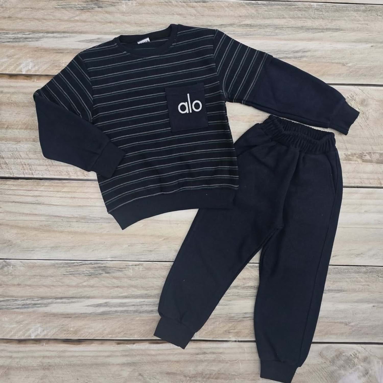 ALO ÇİZGİLİ SELANİK KUMAŞ TAKIM - LACİVERT - 8 YAŞ