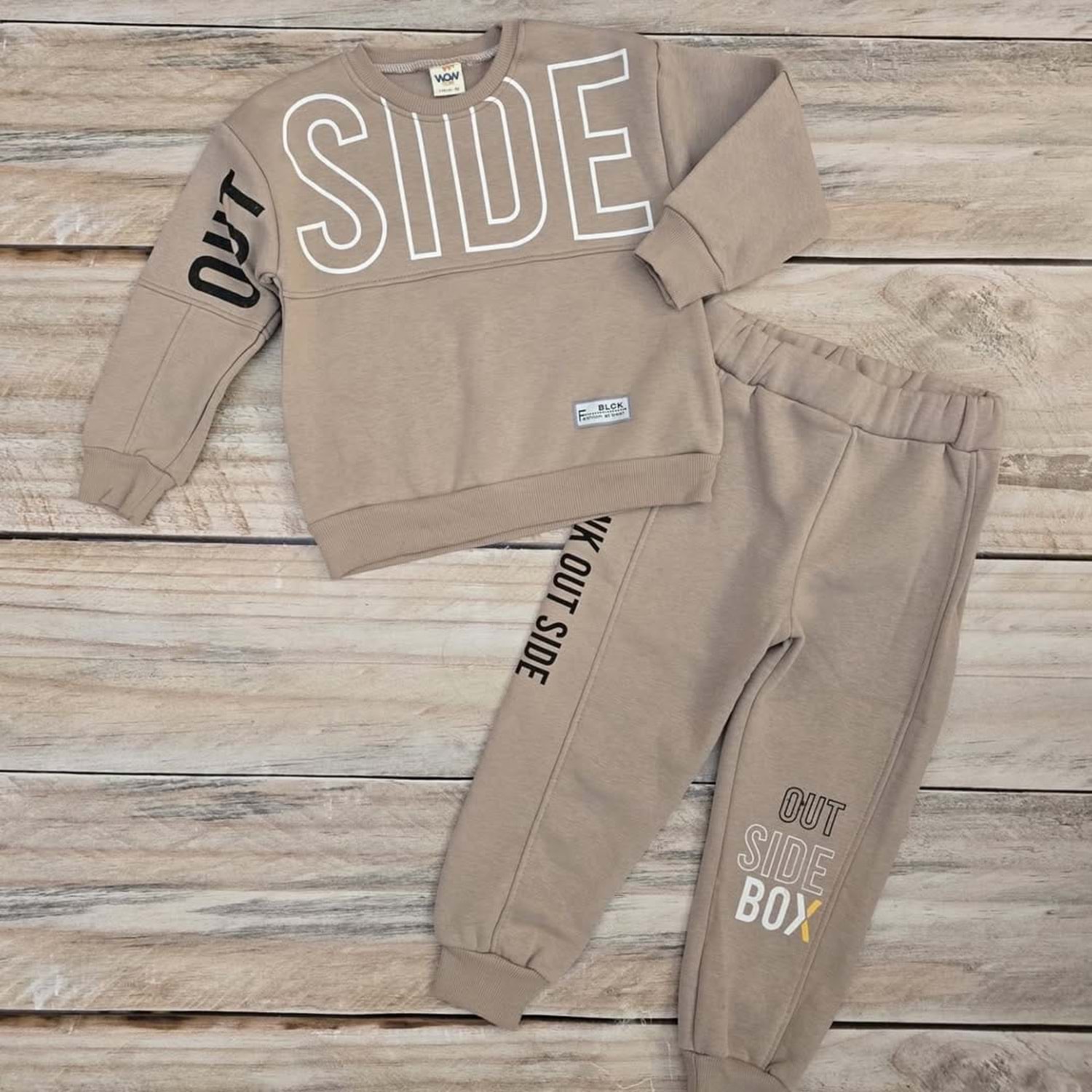 OUT SIDE BOX BASKILI ÜÇ İP PAMUKLU TAKIM - KAHVERENGİ - 6 YAŞ