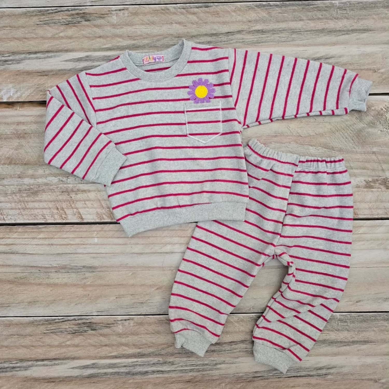 PAPATYA DESENLİ SELANİK KUMAŞ TAKIM - GRİ - 5 YAŞ