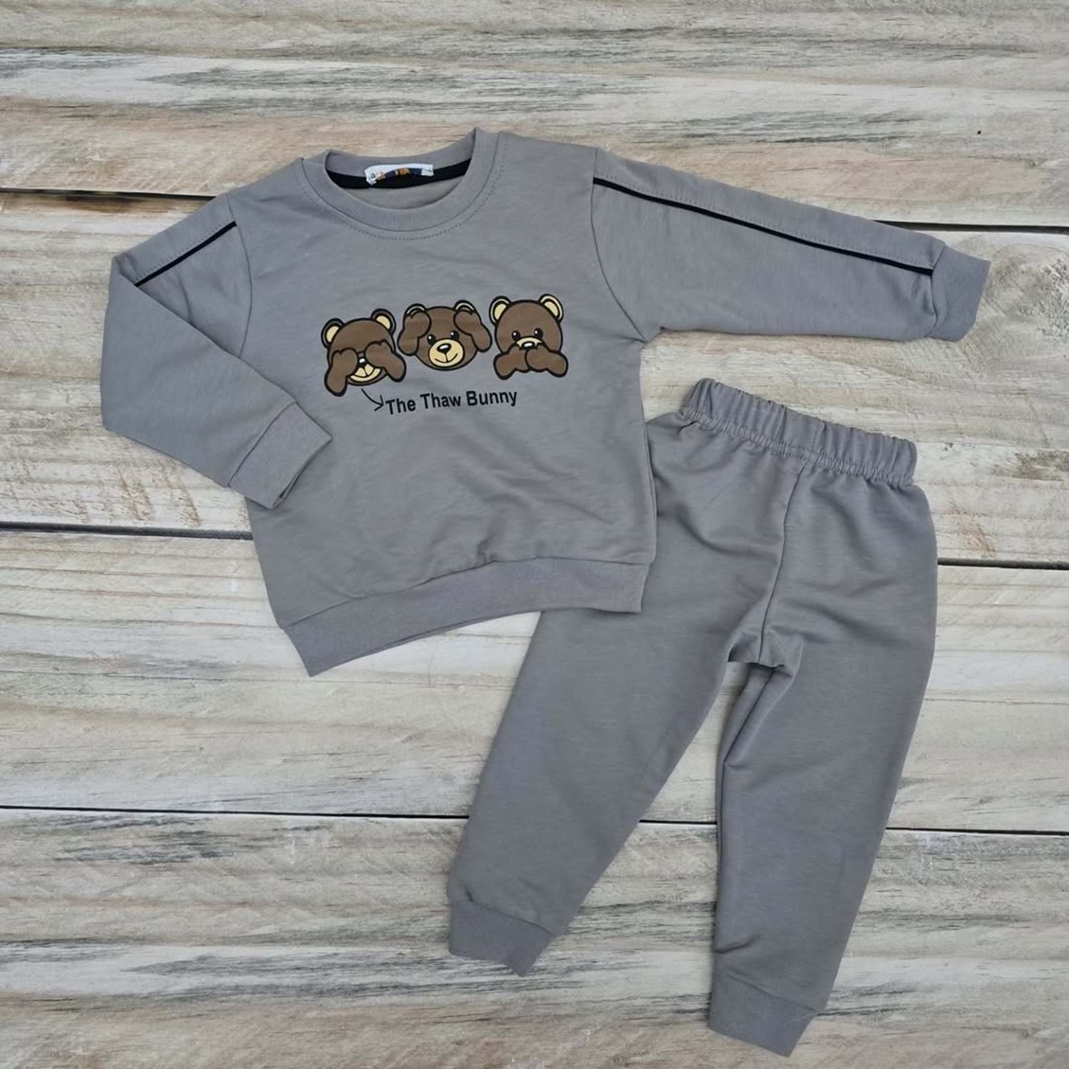 (1-4) Yaş ARTEX ÜÇ MAYMUN DESENLİ MEVSİMLİK TAKIM - GRİ - 3 YAŞ