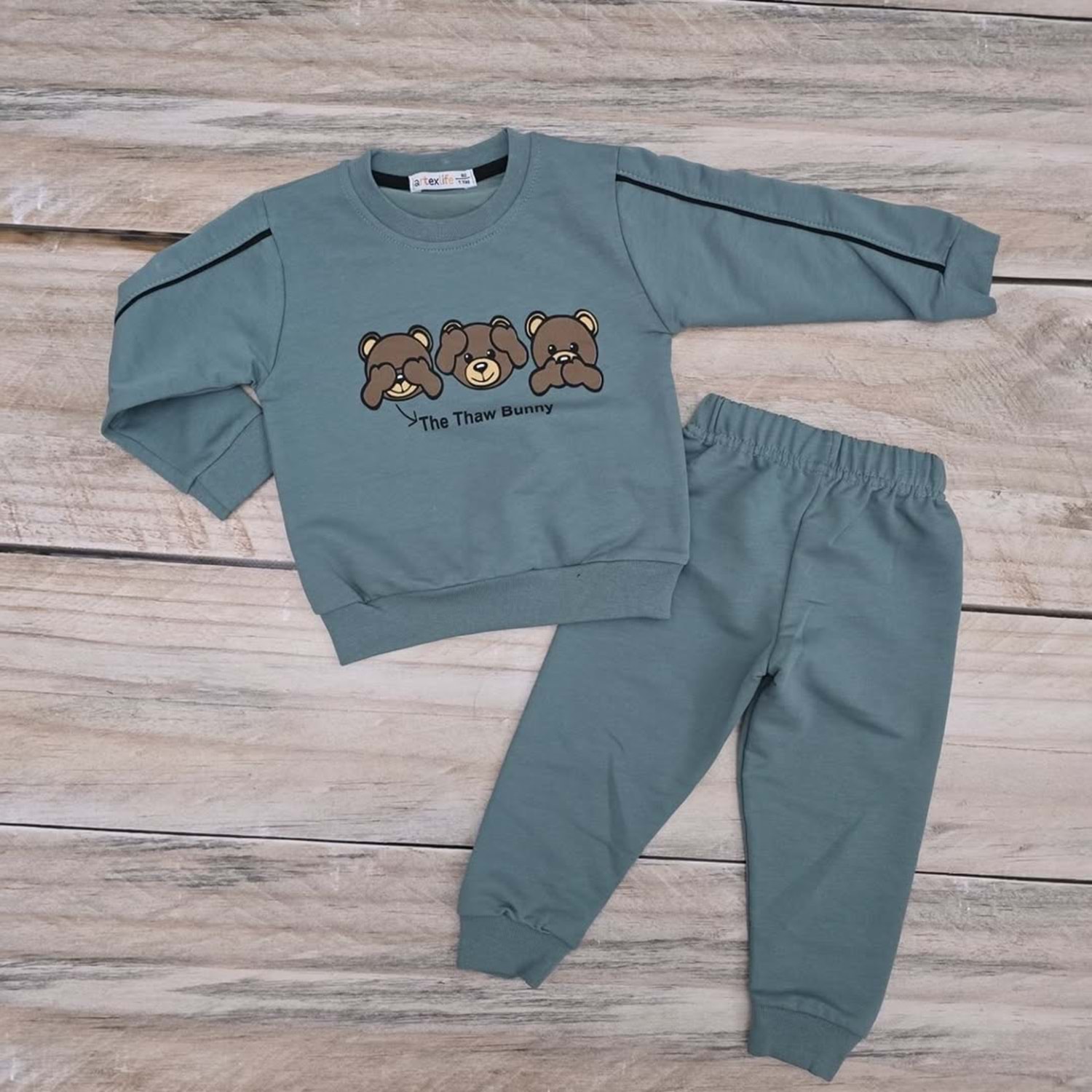 (1-4) Yaş ARTEX ÜÇ MAYMUN DESENLİ MEVSİMLİK TAKIM - YEŞİL - 4 YAŞ