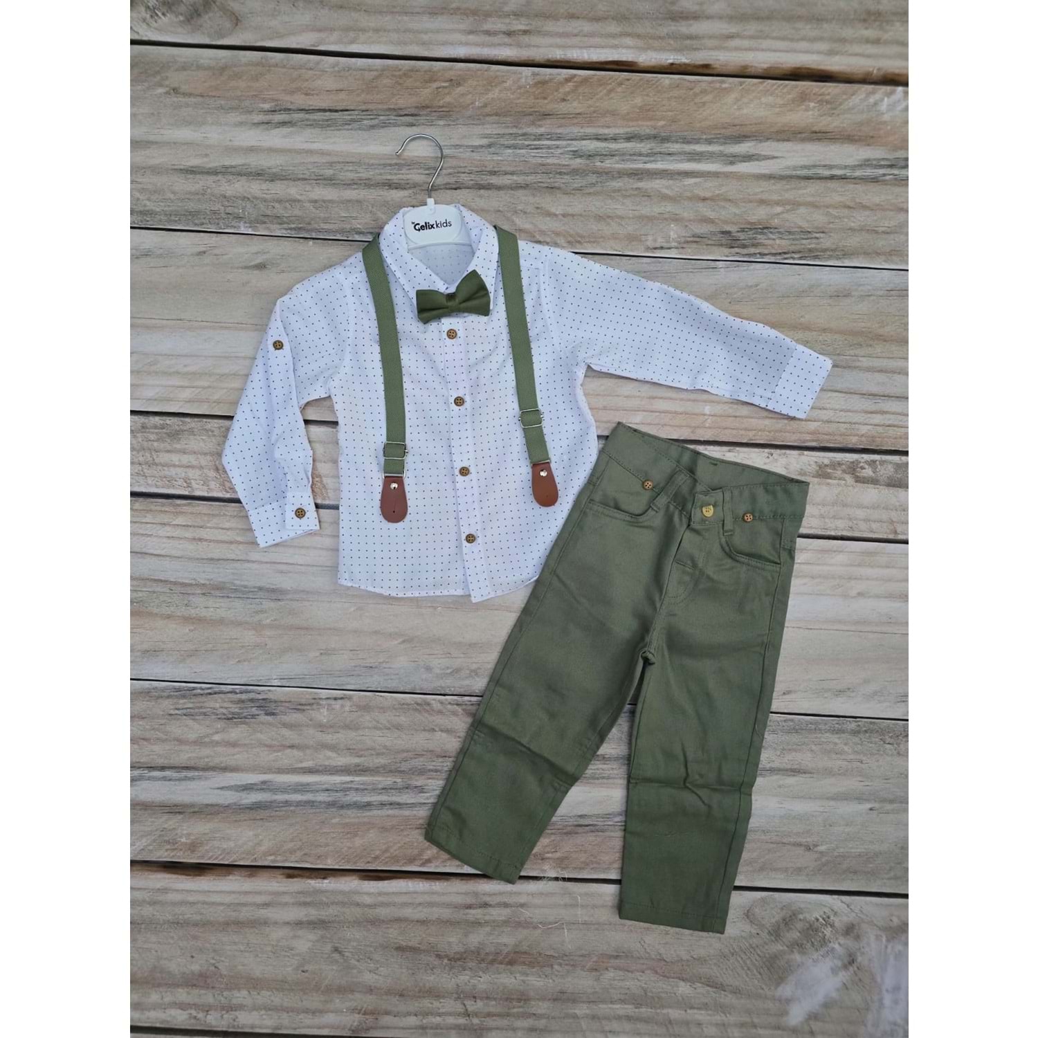 (1-8) Yaş CELIX NOKTALI KETEN PANTOLONLU TAKIM - YEŞİL - 1 YAŞ