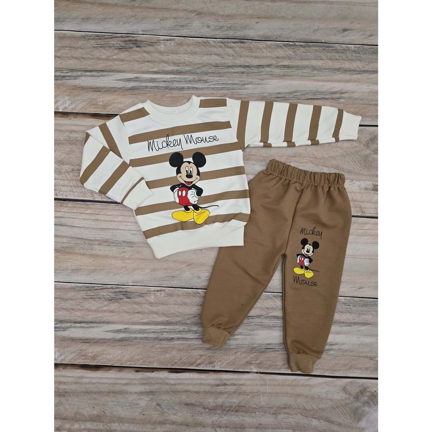(2-5) Yaş SELFİE MİCKEY DESENLİ ÇİZGİLİ MEVSİMLİK TAKIM - AÇIK KAHVE - 2 YAŞ