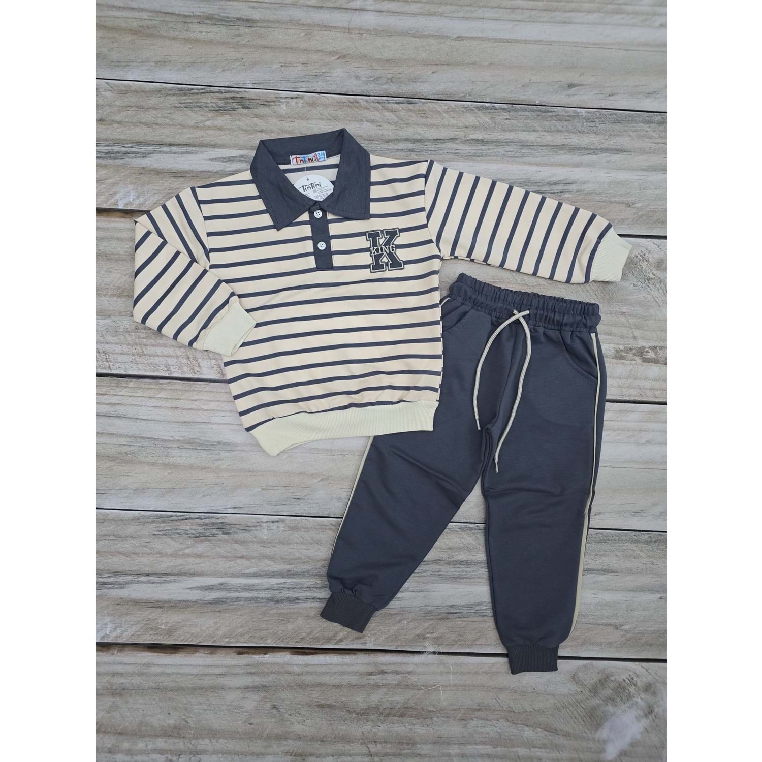 (3-10) Yaş TİNTİNİ KING BASKILI MEVSİMLİK TAKIM - GRİ - 5-6 YAŞ