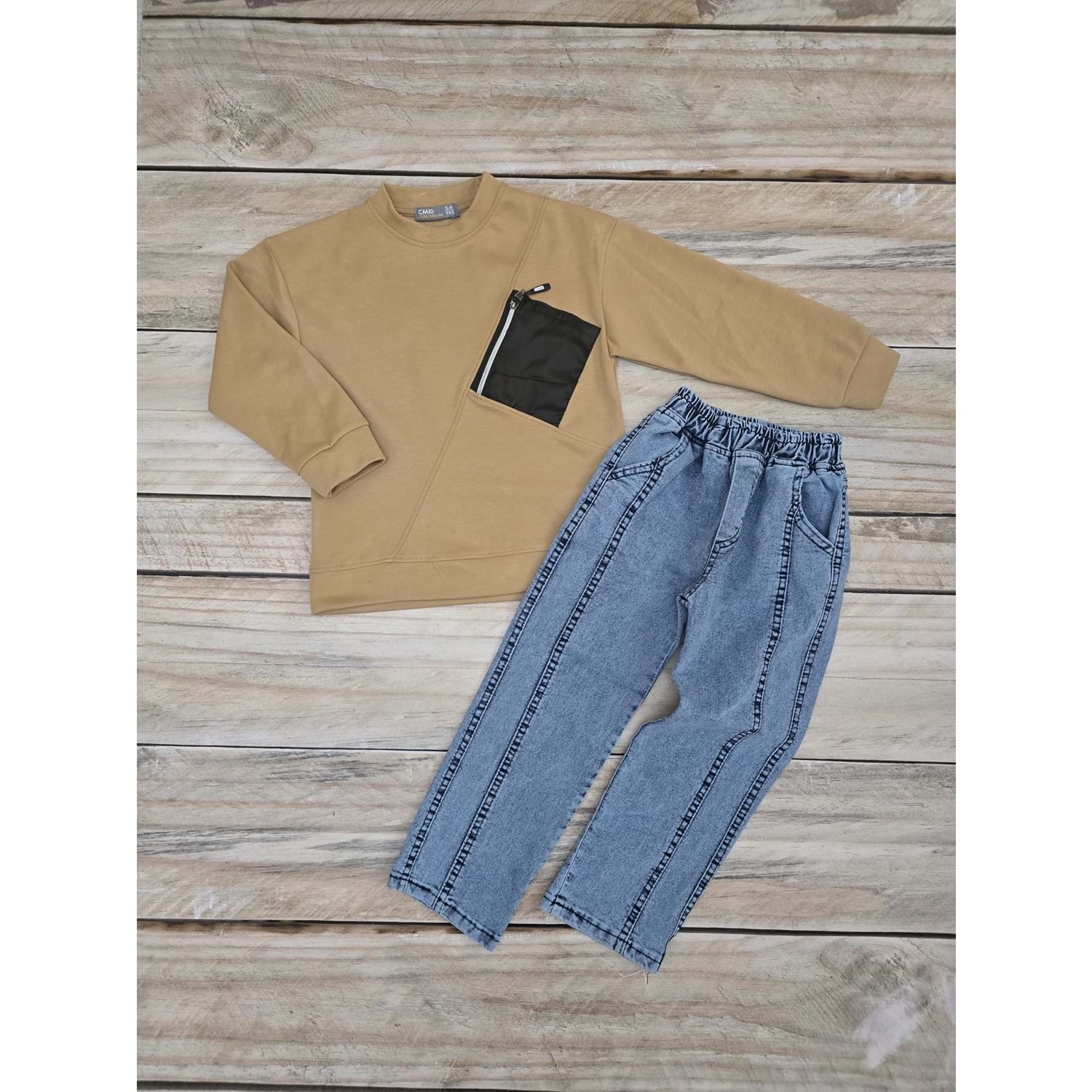 (5-12) Yaş CMK YANDAN CEPLİ KOTLU TAKIM - KAHVERENGİ - 9-10 YAŞ