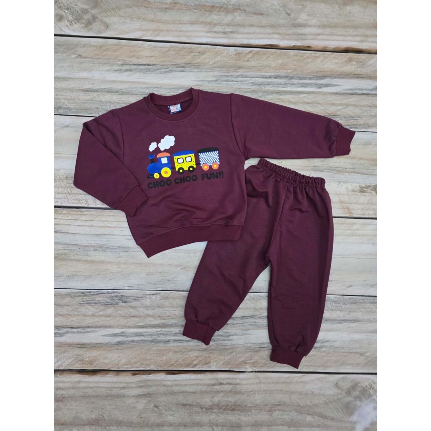 KESKİNCAN TREN DESENLİ MEVSİMLİK TAKIM - BORDO - 2 YAŞ