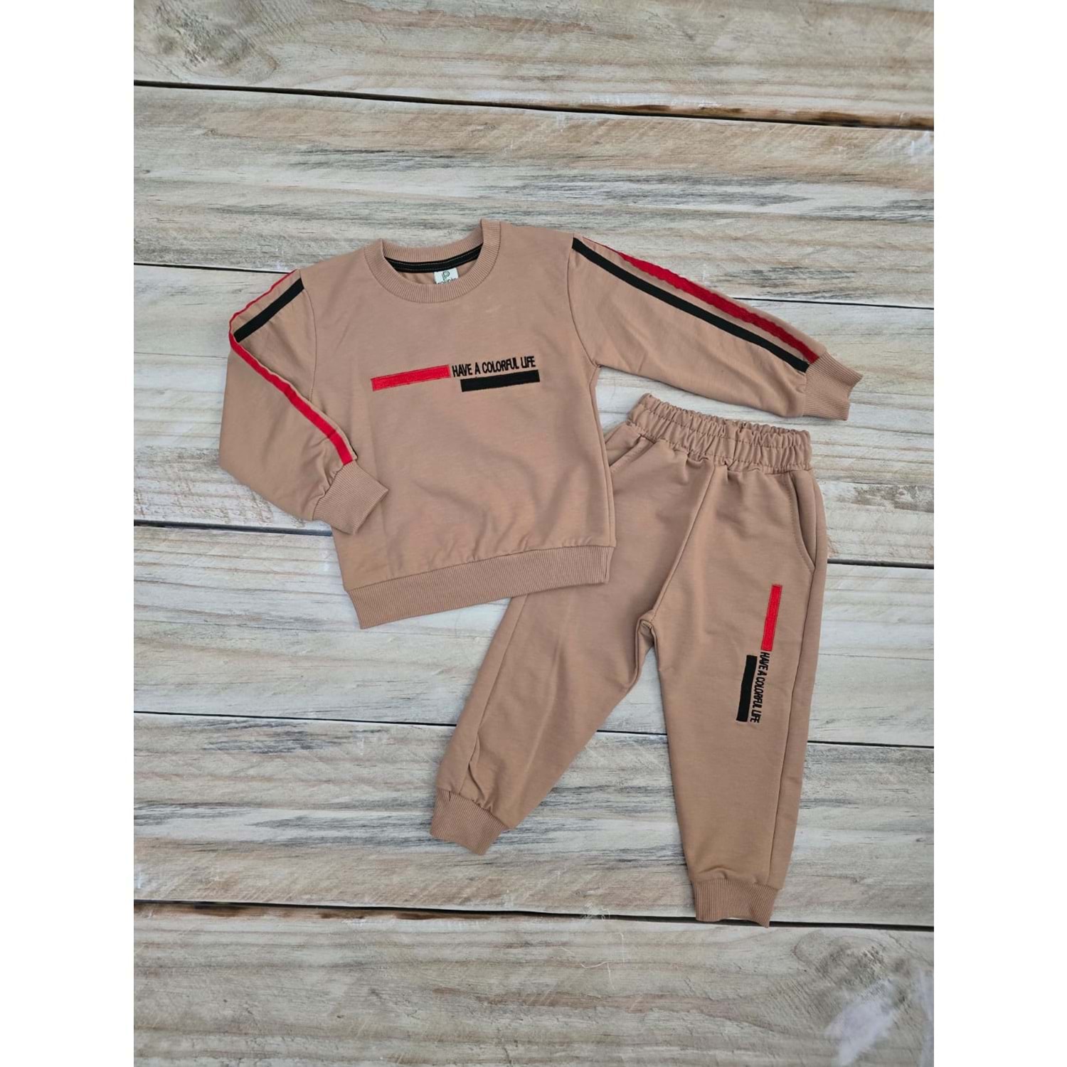 POFIDIK ŞERİTLİ MEVSİMLİK TAKIM - KAHVERENGİ - 2 YAŞ