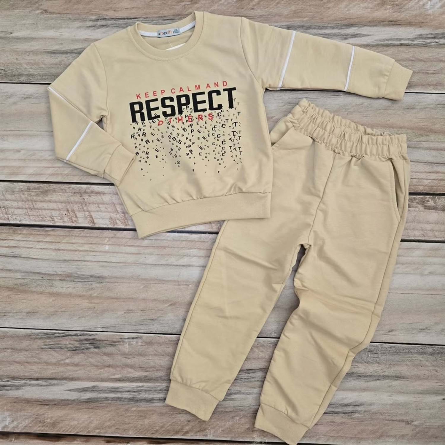 RESPECT DESENLİ MEVSİMLİK TAKIM - KREM - 4-5 YAŞ