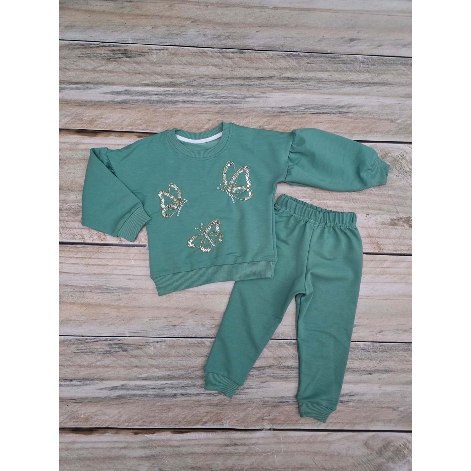(1-4) Yaş ARTEX KELEBEK İŞLEMELİ MEVSİMLİK TAKIM - YEŞİL - 1 YAŞ