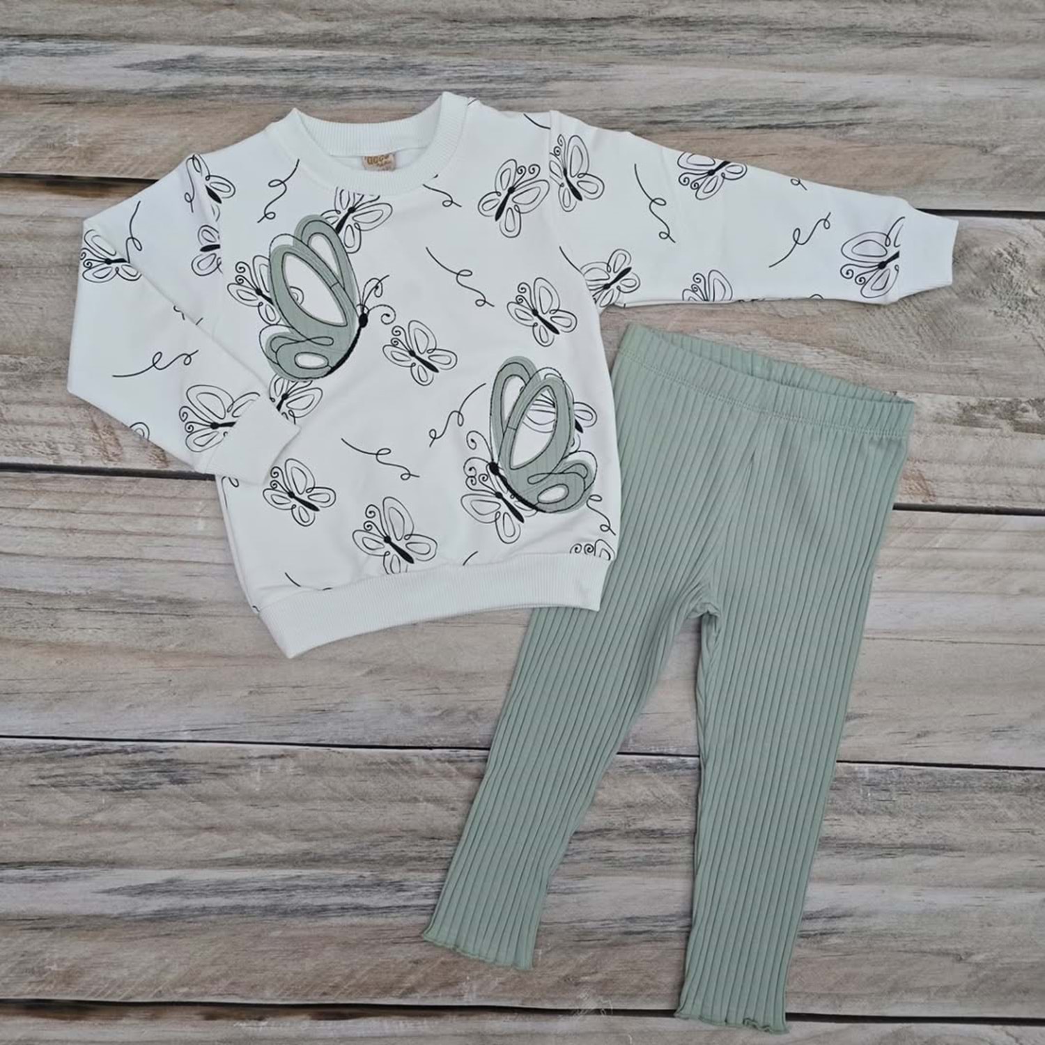 (2-5) Yaş DECO KELEBEK DESENLİ MEVSİMLİK TAKIM - YEŞİL - 3-4 YAŞ
