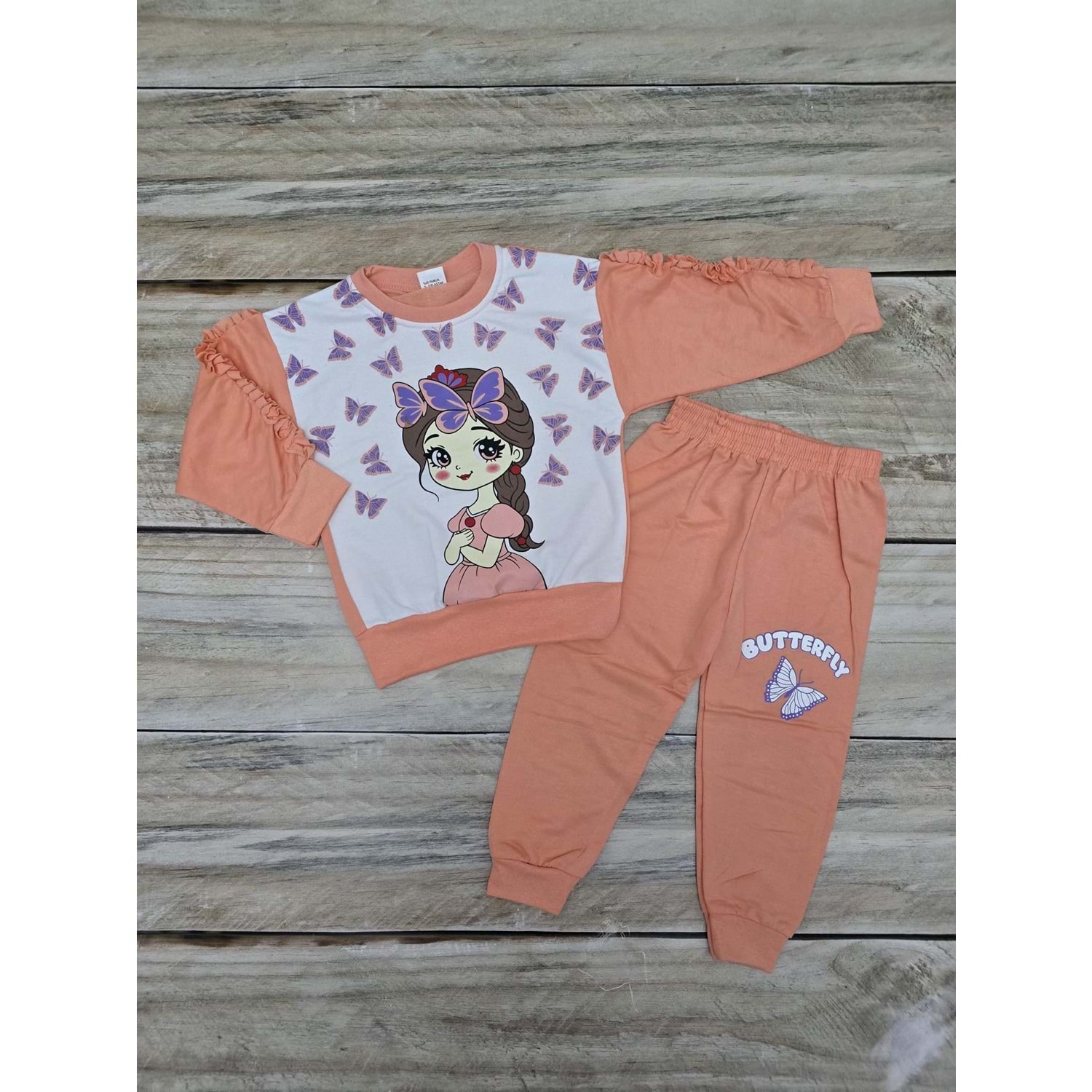 (2-5) Yaş MEMOCAN BUTTERFLY MEVSİMLİK TAKIM - PUDRA - 4-5 YAŞ