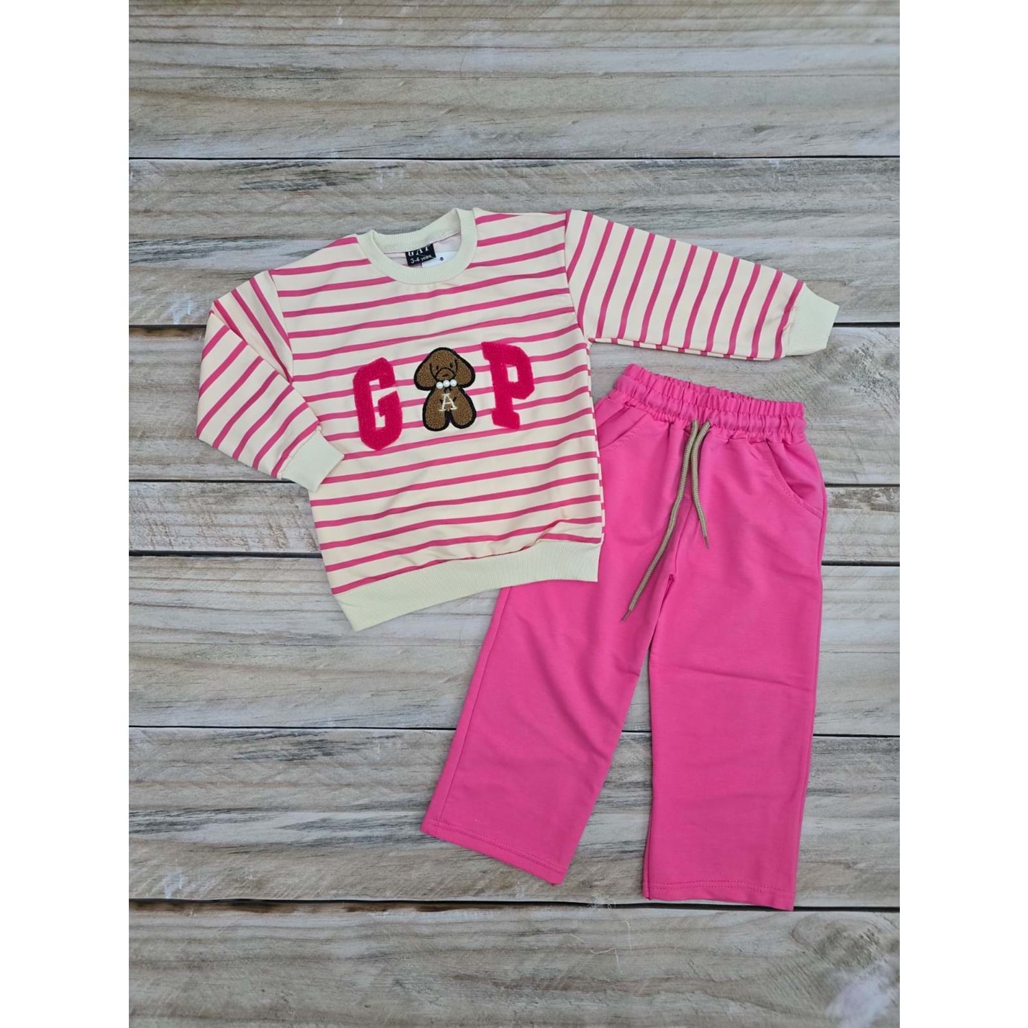 (3-10) Yaş TİNTİNİ GP ÇİZGİLİ MEVSİMLİK TAKIM - PEMBE - 9-10 YAŞ