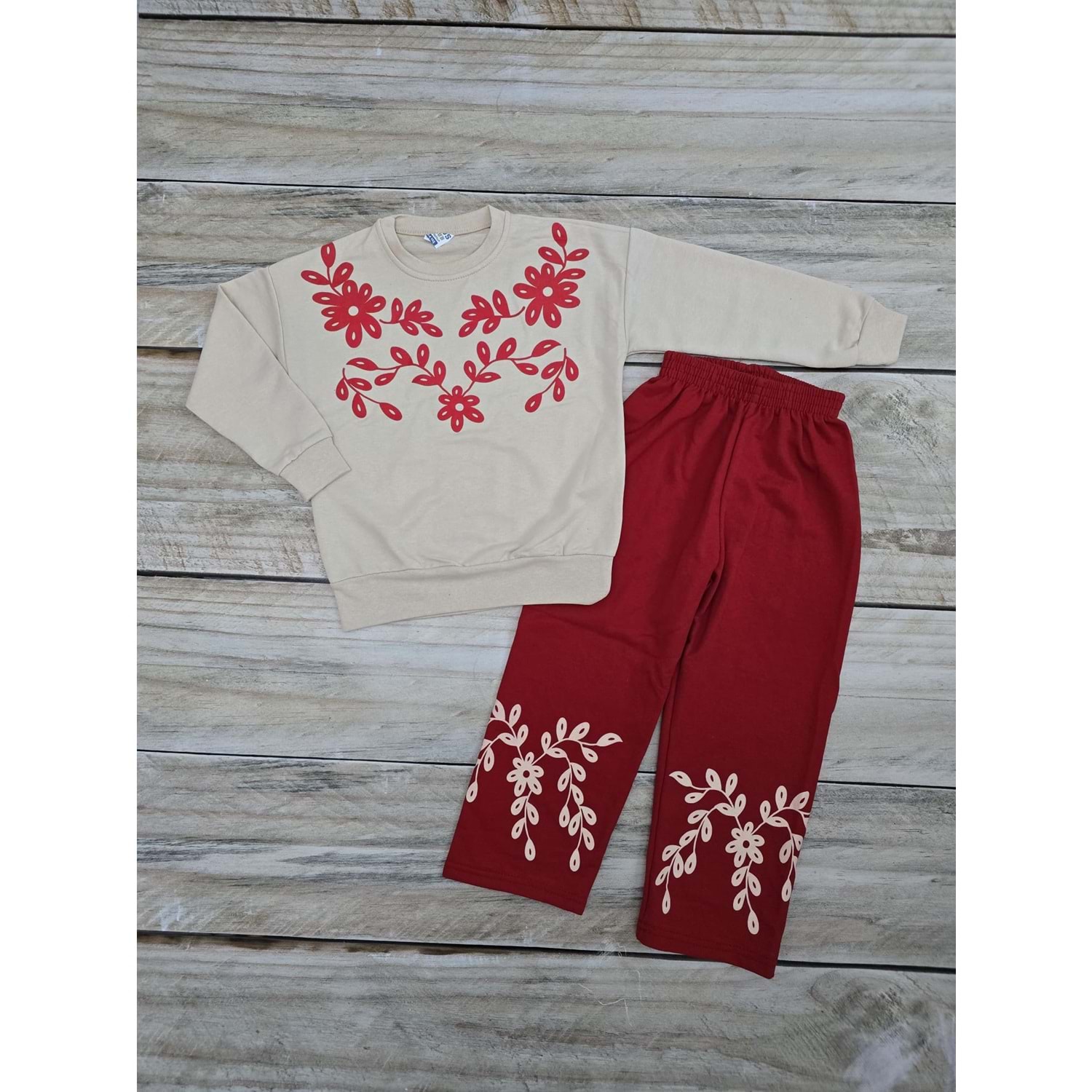 (3-12) Yaş MEMOCAN ÇİÇEKLİ MEVSİMLİK TAKIM - KIRMIZI - 9-10 YAŞ