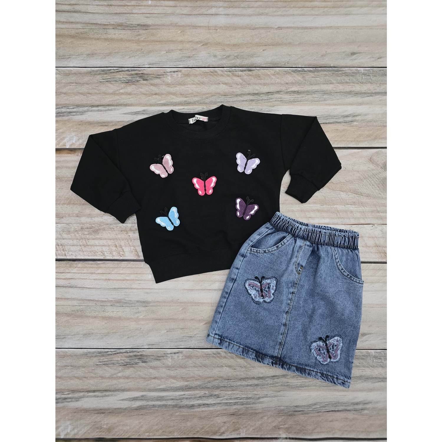 (3-7) Yaş İNCİLAY KELEBEK DETAYLI KOT ETEKLİ TAKIM - DESENLİ - 3 YAŞ
