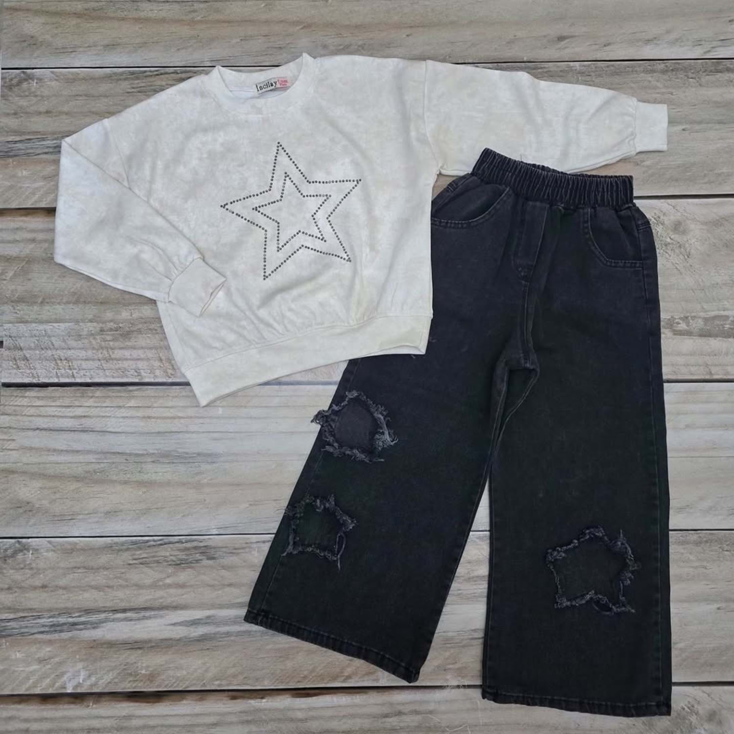 (6-10) Yaş İNCİLAY YILDIZ DESENLİ KOT TAKIM