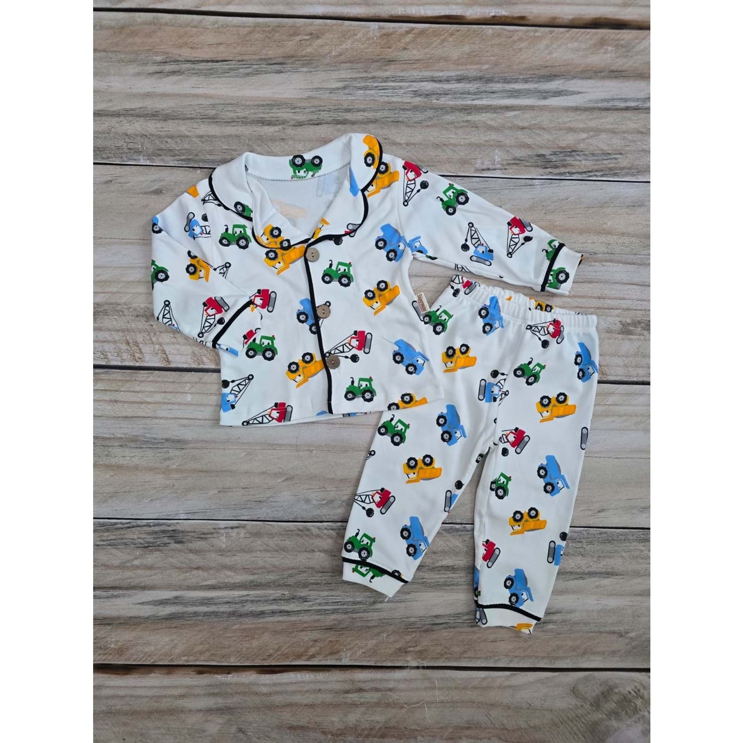 (1-6) Yaş SÜPERMİNİ İŞ MAKİNESİ DÜĞMELİ MEVSİMLİK PİJAMA TAKIMI - DESENLİ - 1 YAŞ