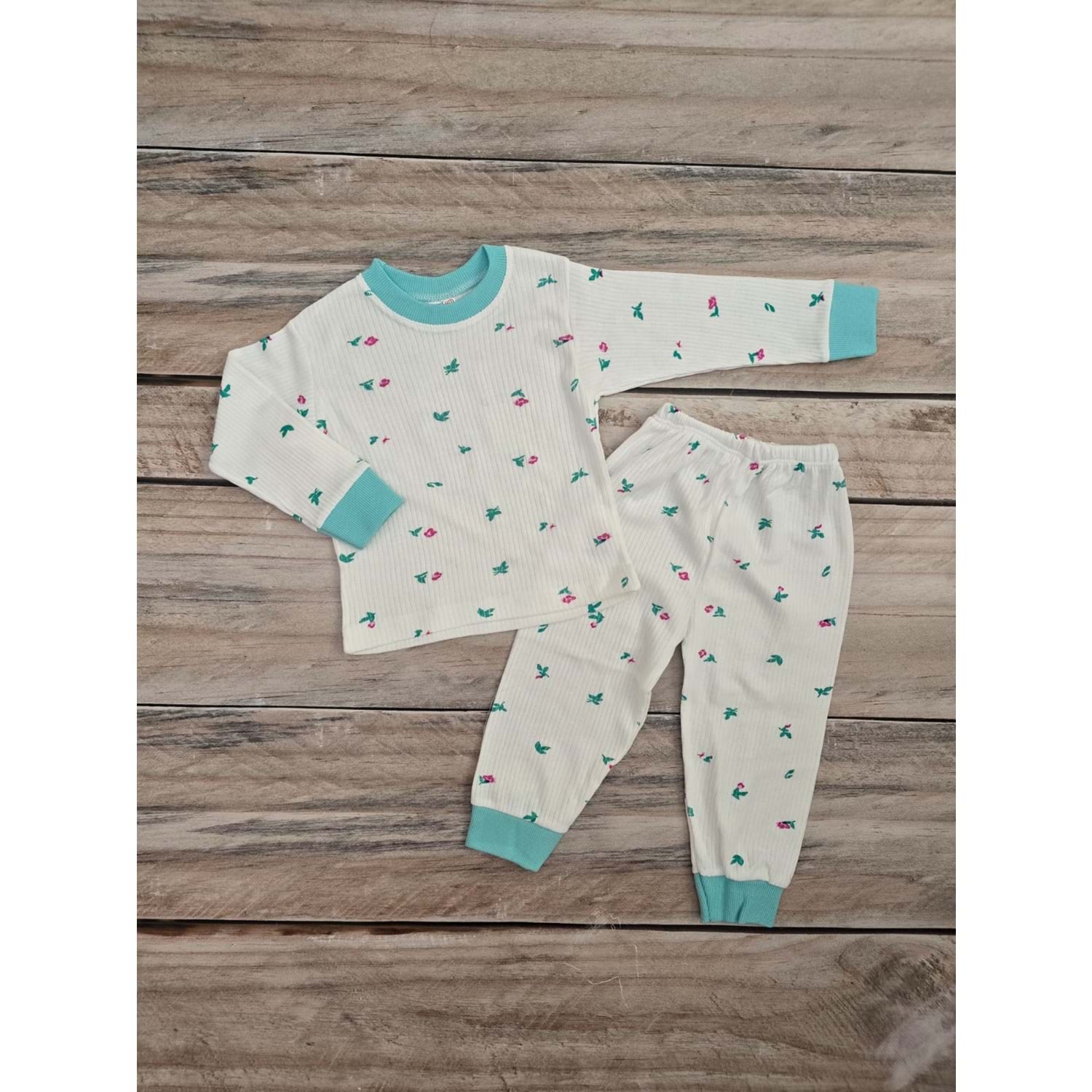 ÇUM ÇUM ÇİÇEK DESENLİ MEVSİMLİK PİJAMA TAKIMI - BEYAZ - 2 YAŞ