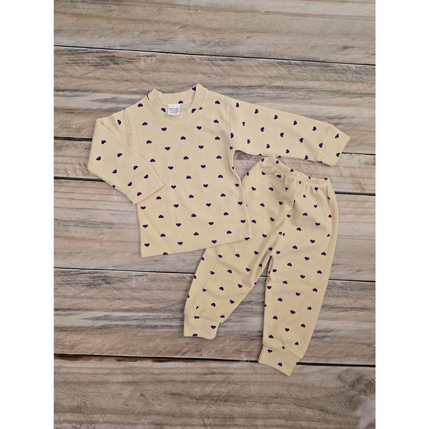 (1-2-3) Yaş ÇUM ÇUM KALPLİ MEVSİMLİK PİJAMA TAKIMI