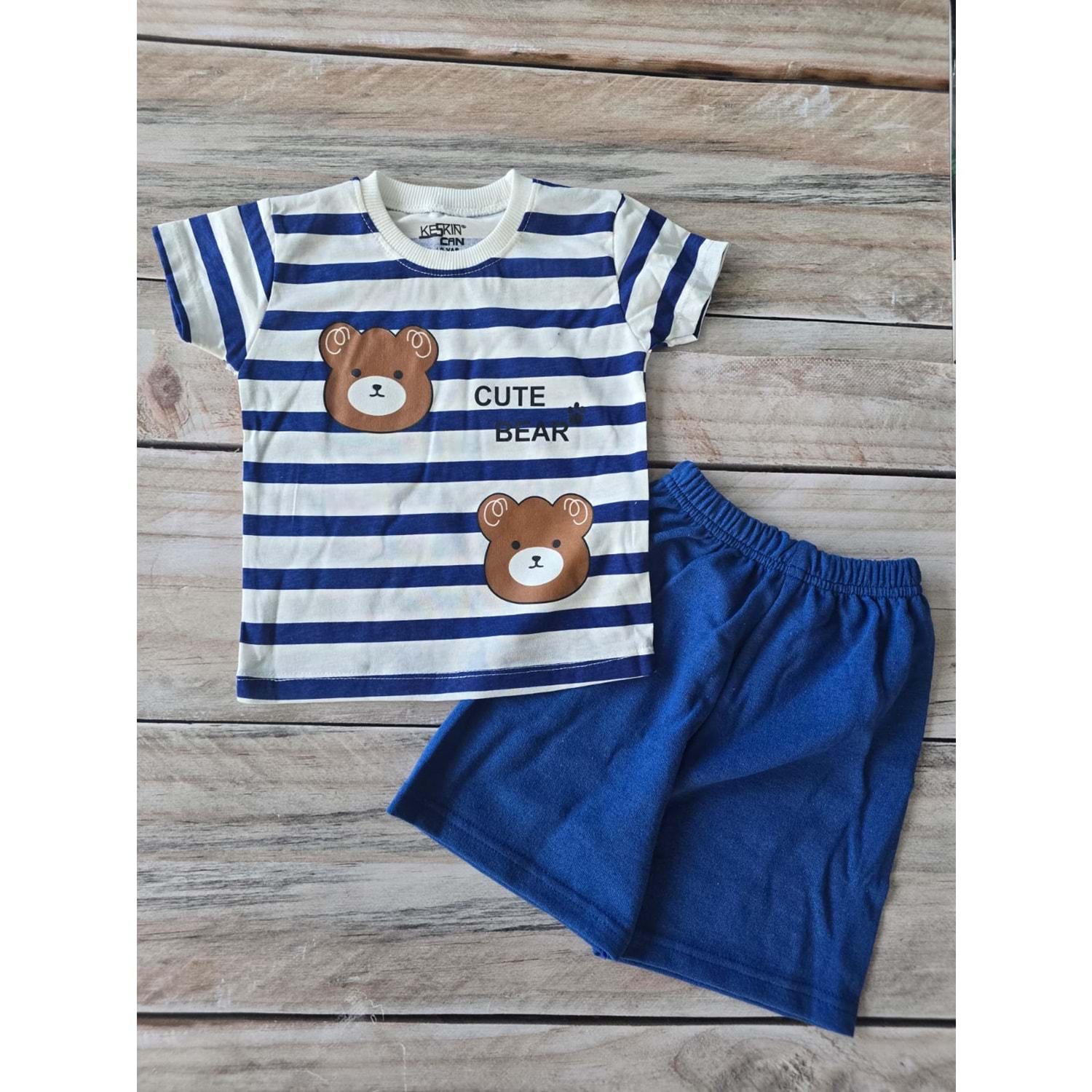 (2-5) Yaş KESKİNCAN CUTE BEAR BASKILI ŞORTLU TAKIM - SAKS MAVİSİ - 3 YAŞ