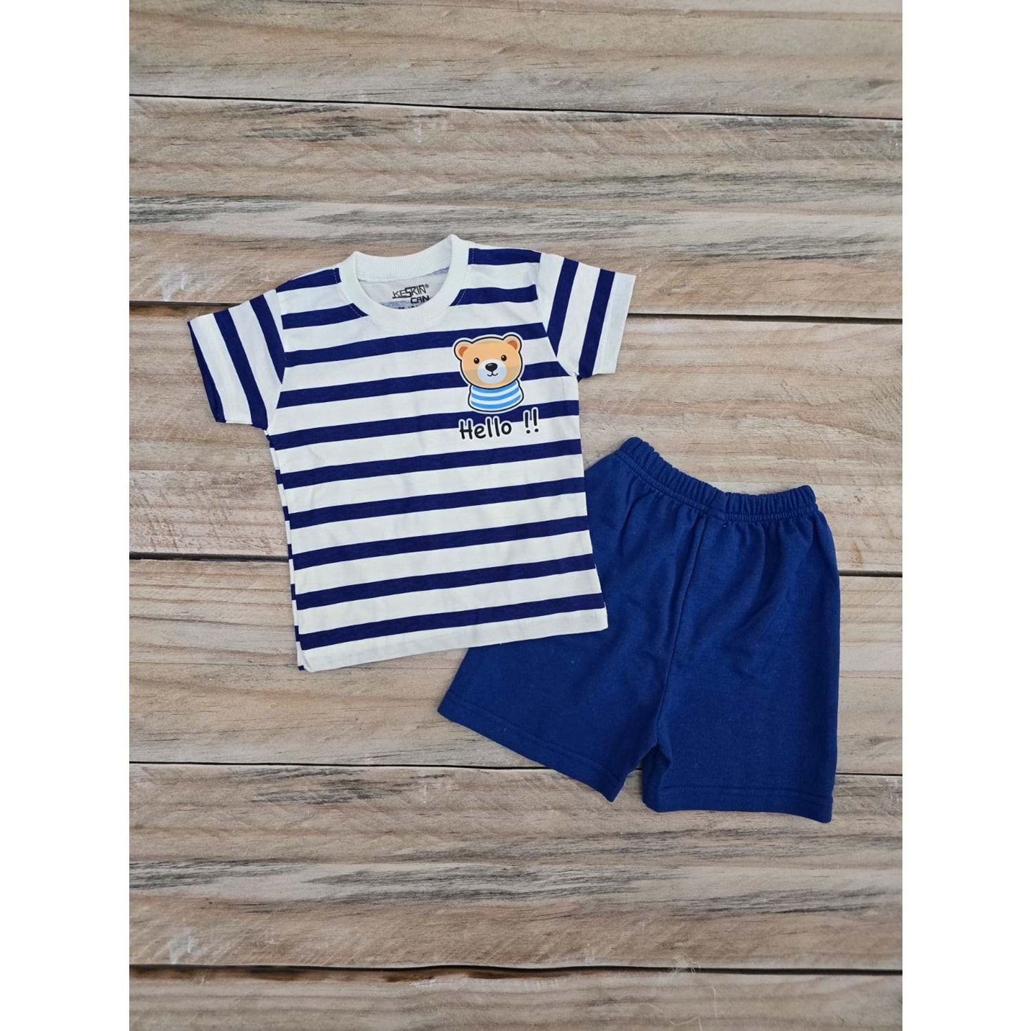 (2-5) Yaş KESKİNCAN HELLO AYICIKLI ŞORTLU TAKIM - SAKS MAVİSİ - 3 YAŞ