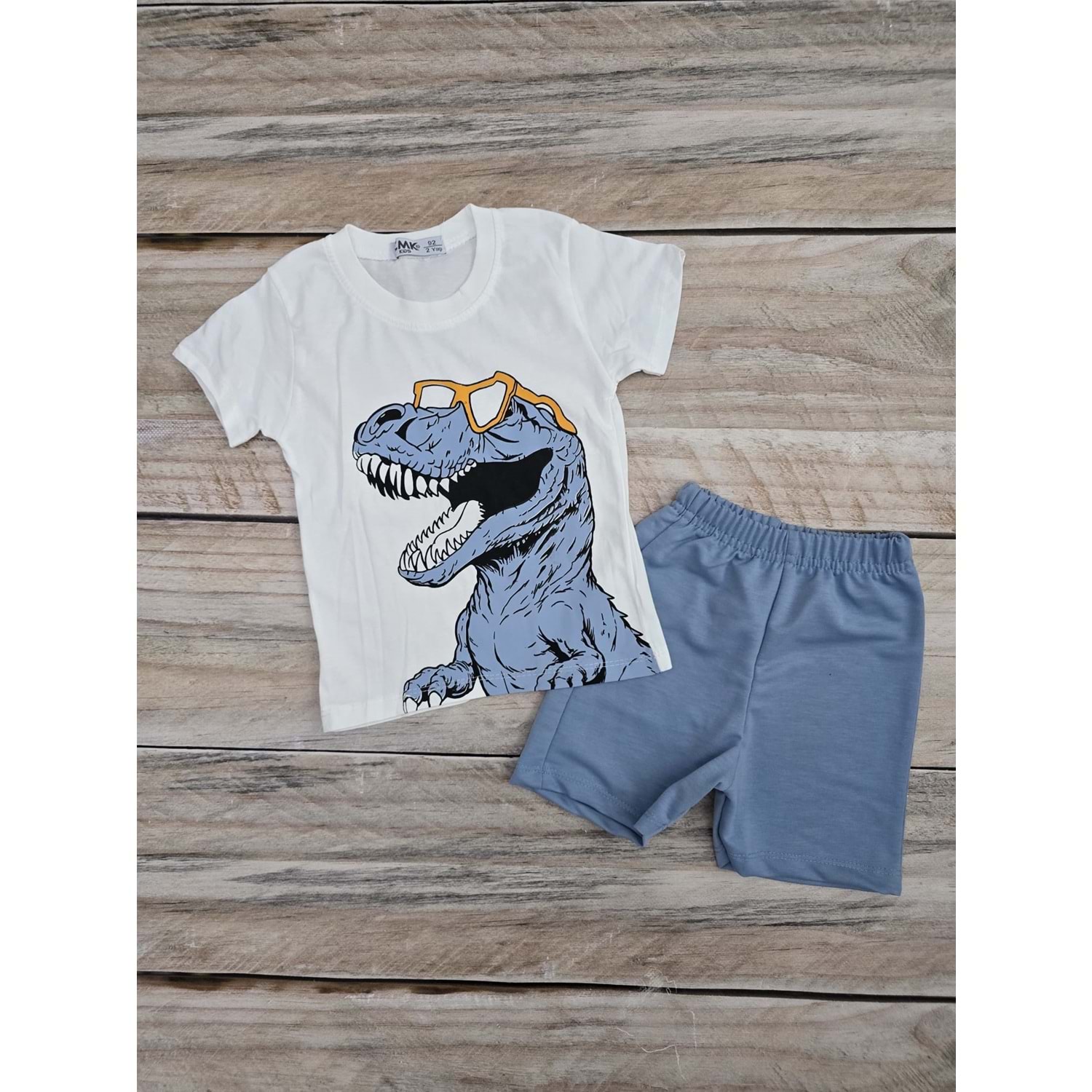 (2-9) Yaş CMK DİNAZOR BASKILI ŞORTLU TAKIM - MAVİ - 2 YAŞ