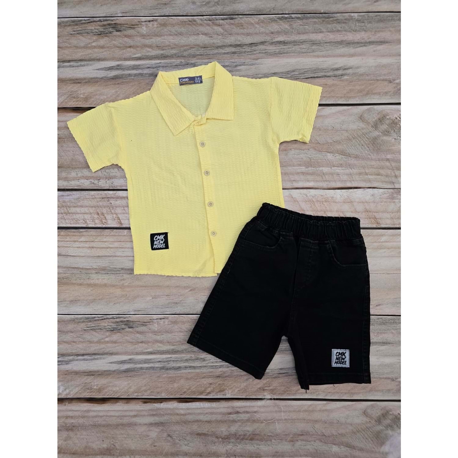 (3-10) Yaş CMK GÖMLEKLİ KOT ŞORTLU TAKIM - SARI - 3-4 YAŞ