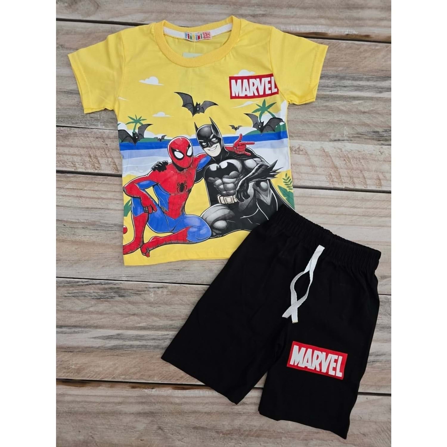 (3-10) Yaş TİNTİNİ MARVEL BASKILI ŞORTLU TAKIM - SARI - 6-7 YAŞ