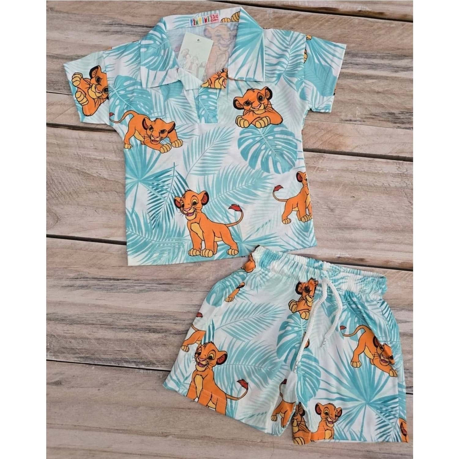 (3-10) Yaş TİNTİNİ YAKALI LION KING BASKILI ŞORTLU TAKIM - MAVİ - 6-7 YAŞ