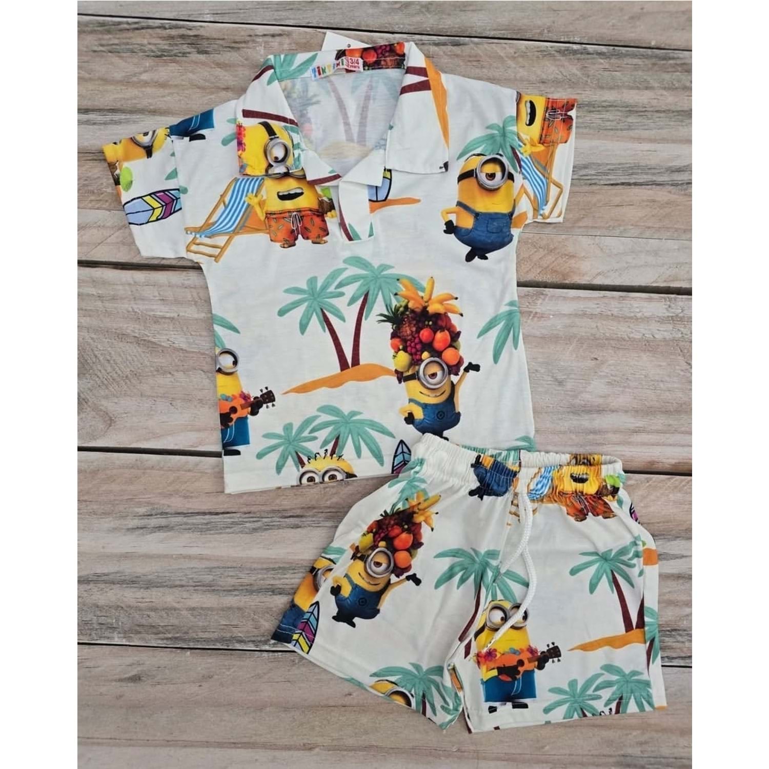 (3-10) Yaş TİNTİNİ YAKALI MİNİON BASKILI ŞORTLU TAKIM - MAVİ - 6-7 YAŞ
