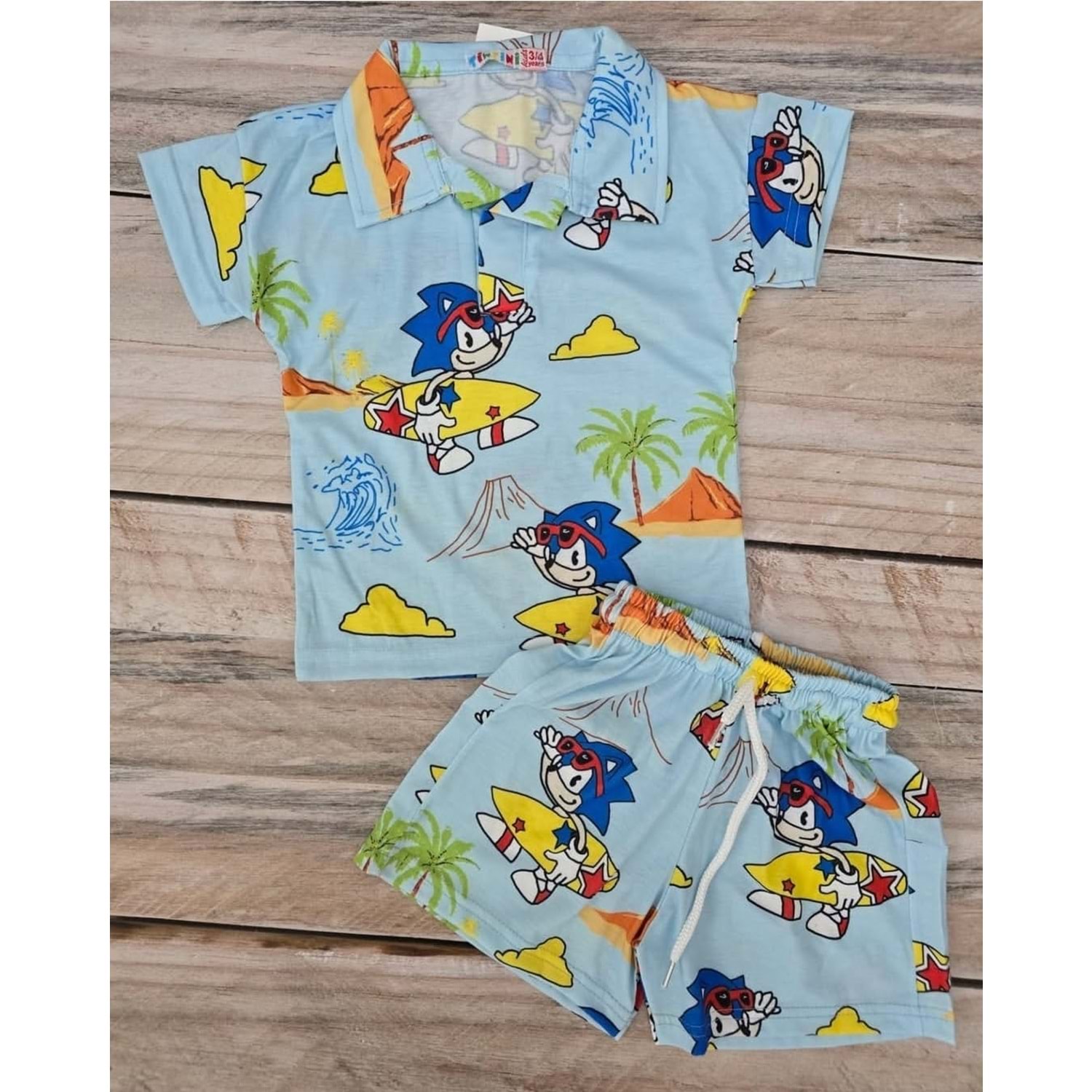 (3-10) Yaş TİNTİNİ YAKALI SONIC BASKILI ŞORTLU TAKIM - DESENLİ - 6-7 YAŞ