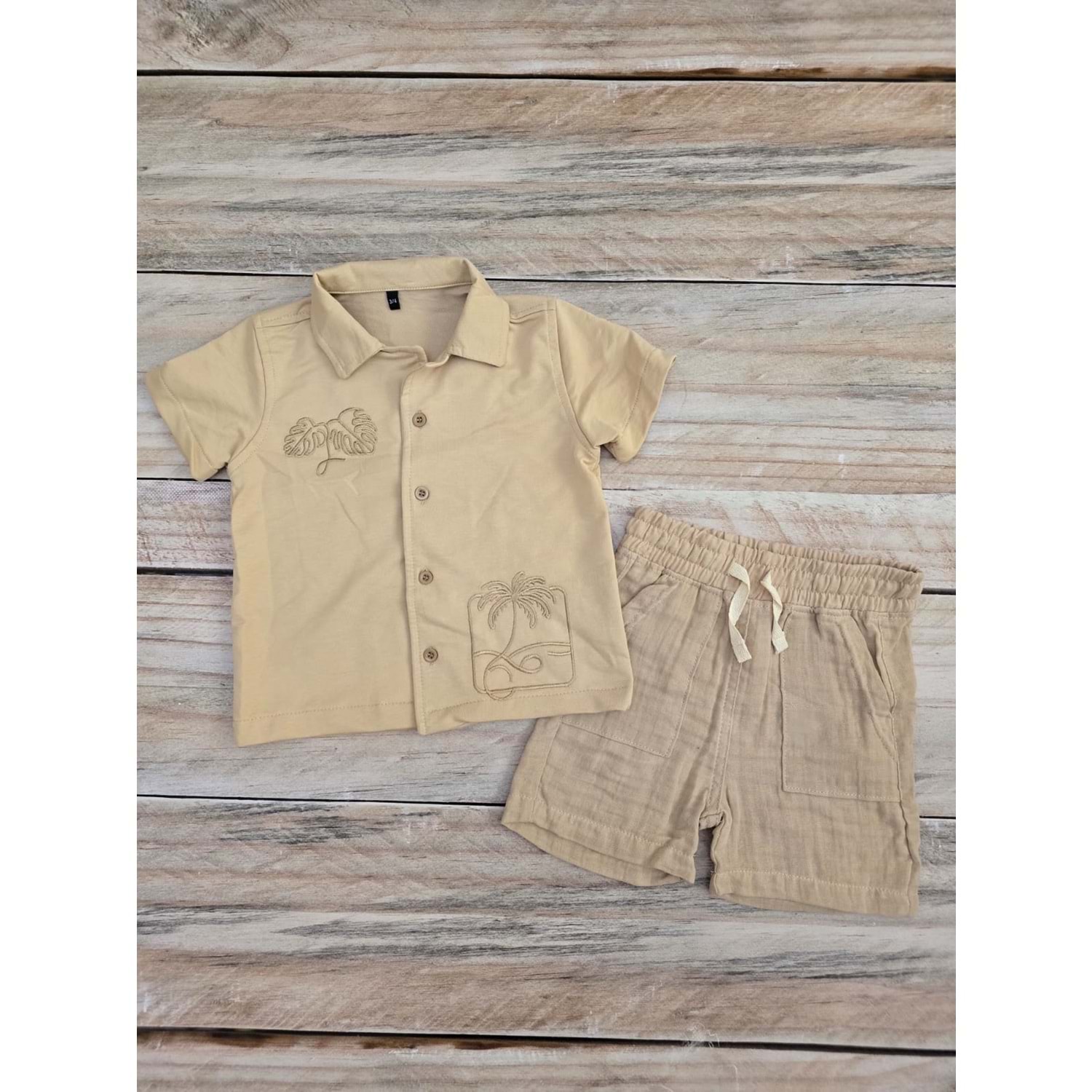 (3-8) Yaş TOMICO YAKALI GÖMLEKLİ KETEN ŞORTLU TAKIM - KREM - 3-4 YAŞ