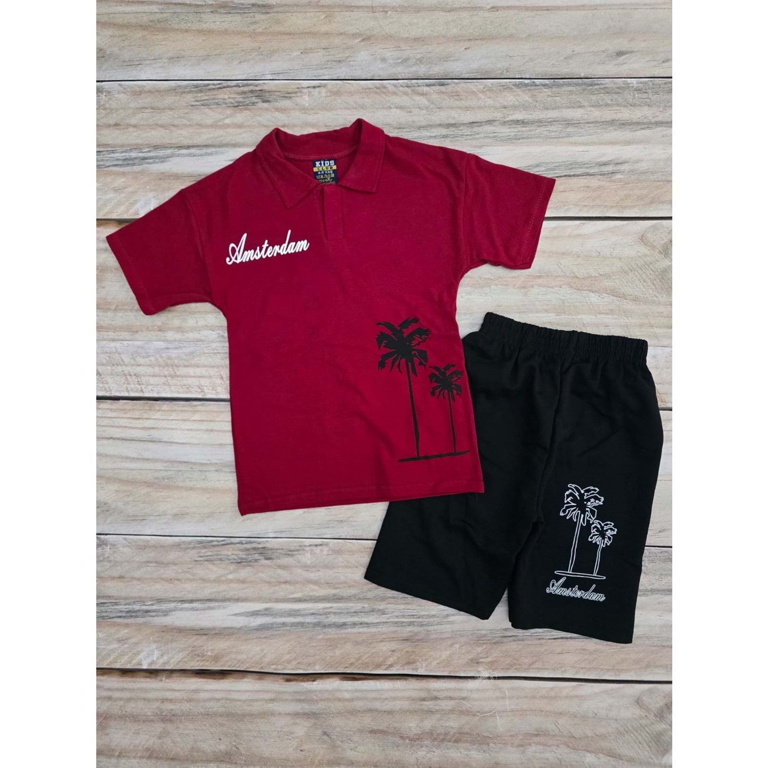 (4-13) Yaş MEMOCAN LAKOS TİŞÖRT KAPRİ TAKIM - BORDO - 4-5 YAŞ