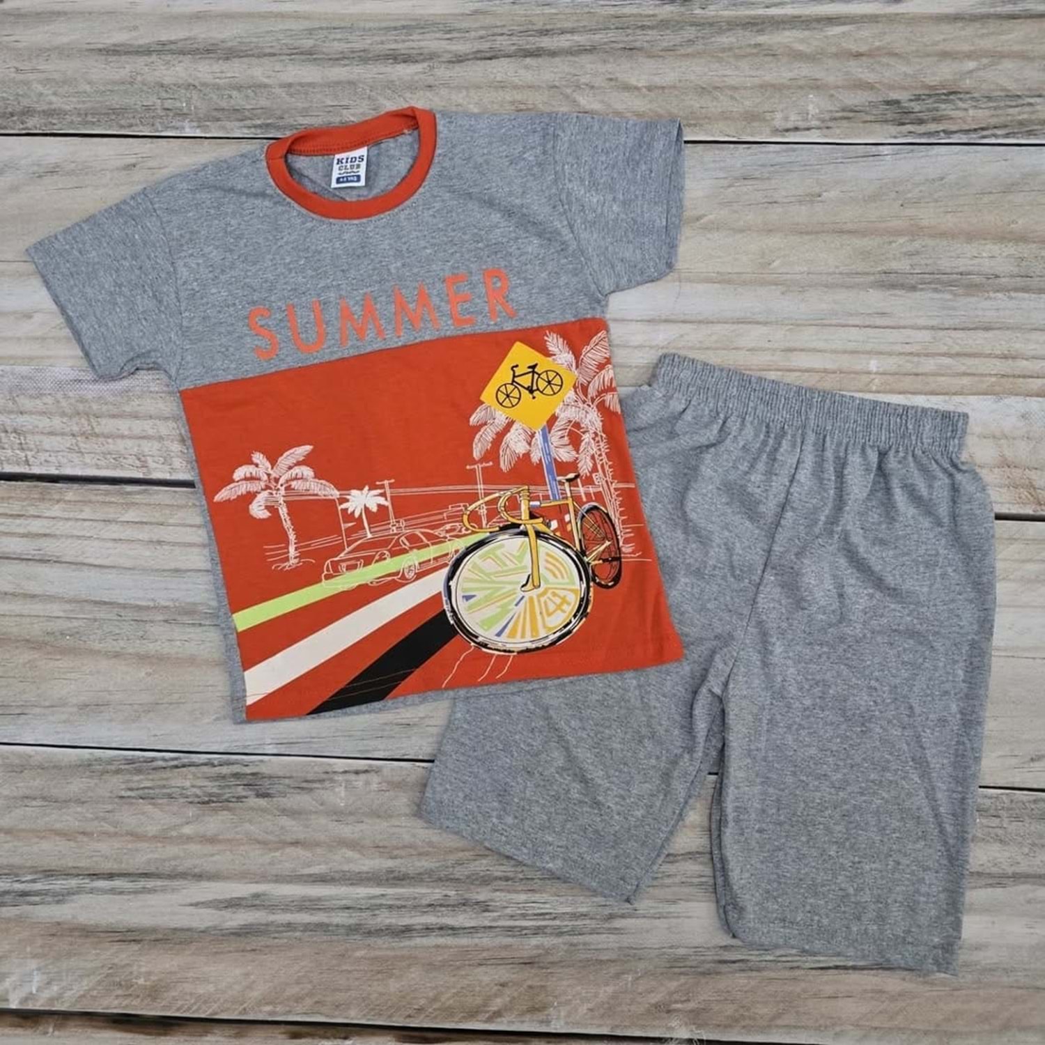 (4-9) Yaş MEMOCAN SUMMER BASKILI ŞORTLU TAKIM - DESENLİ - 5-6 YAŞ