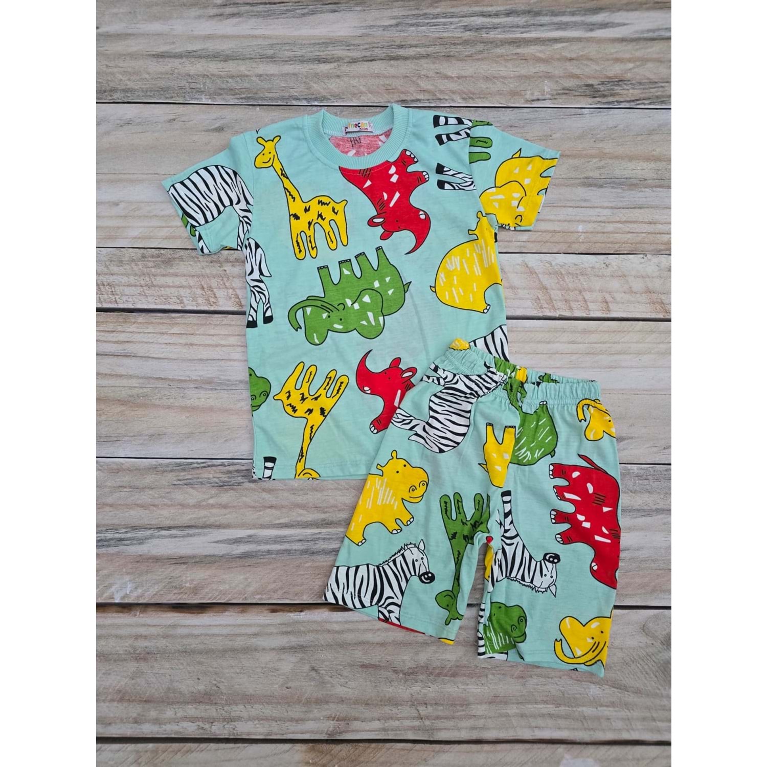 (5-10) Yaş DEFNECAN HAYVAN BASKILI ŞORTLU TAKIM - DESENLİ - 6-7 YAŞ