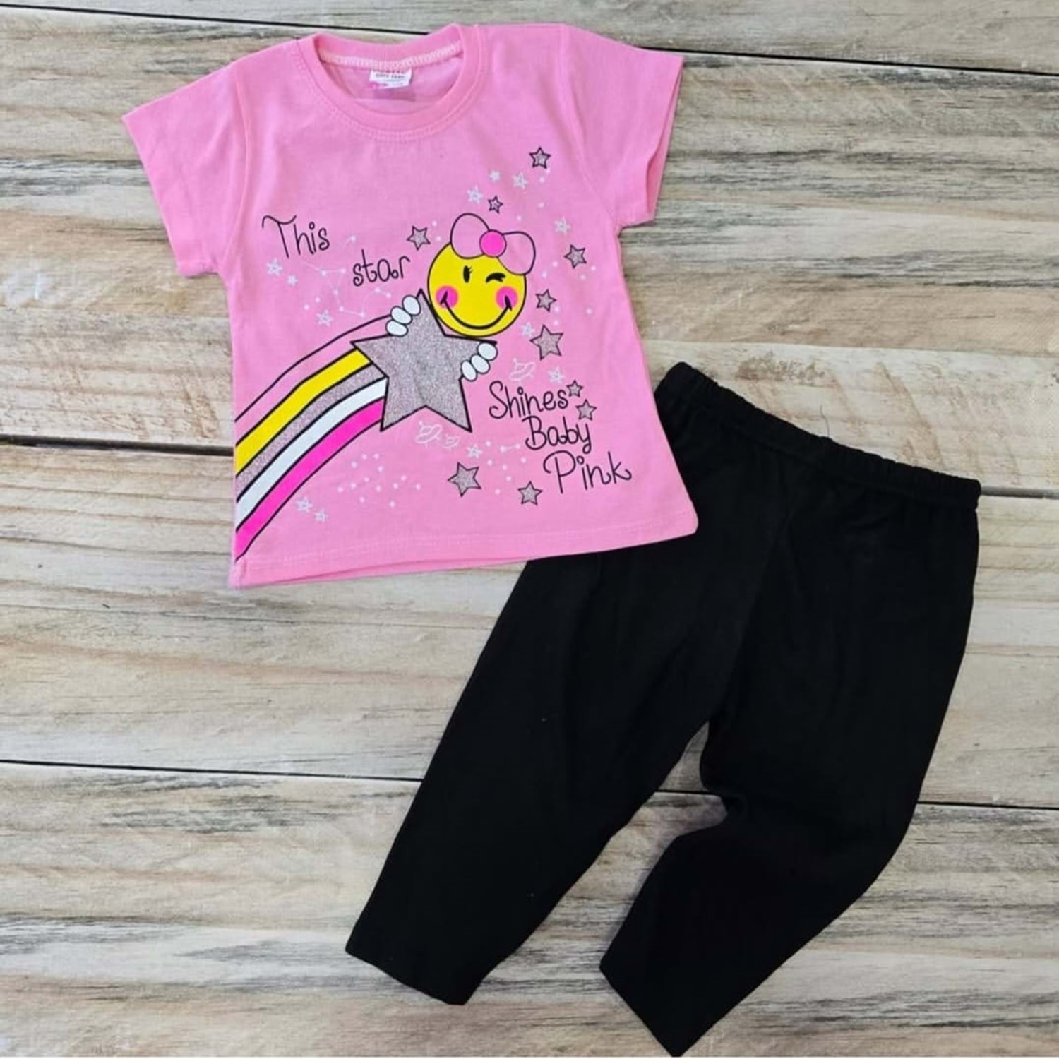 (1-2-3) Yaş MEMOCAN GÜLEN YÜZ BASKILI TAYTLI TAKIM - PEMBE - 1-2 YAŞ