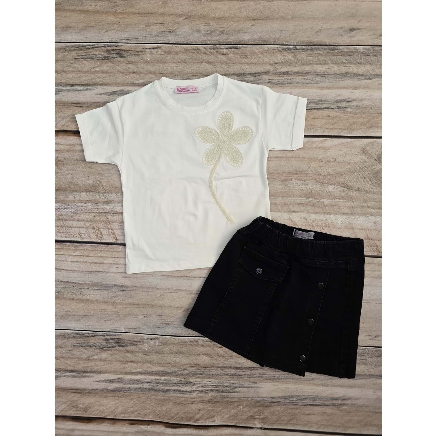 (3-10) Yaş CMK ŞORT ETEKLİ KOT TAKIM - BEYAZ - 9-10 YAŞ
