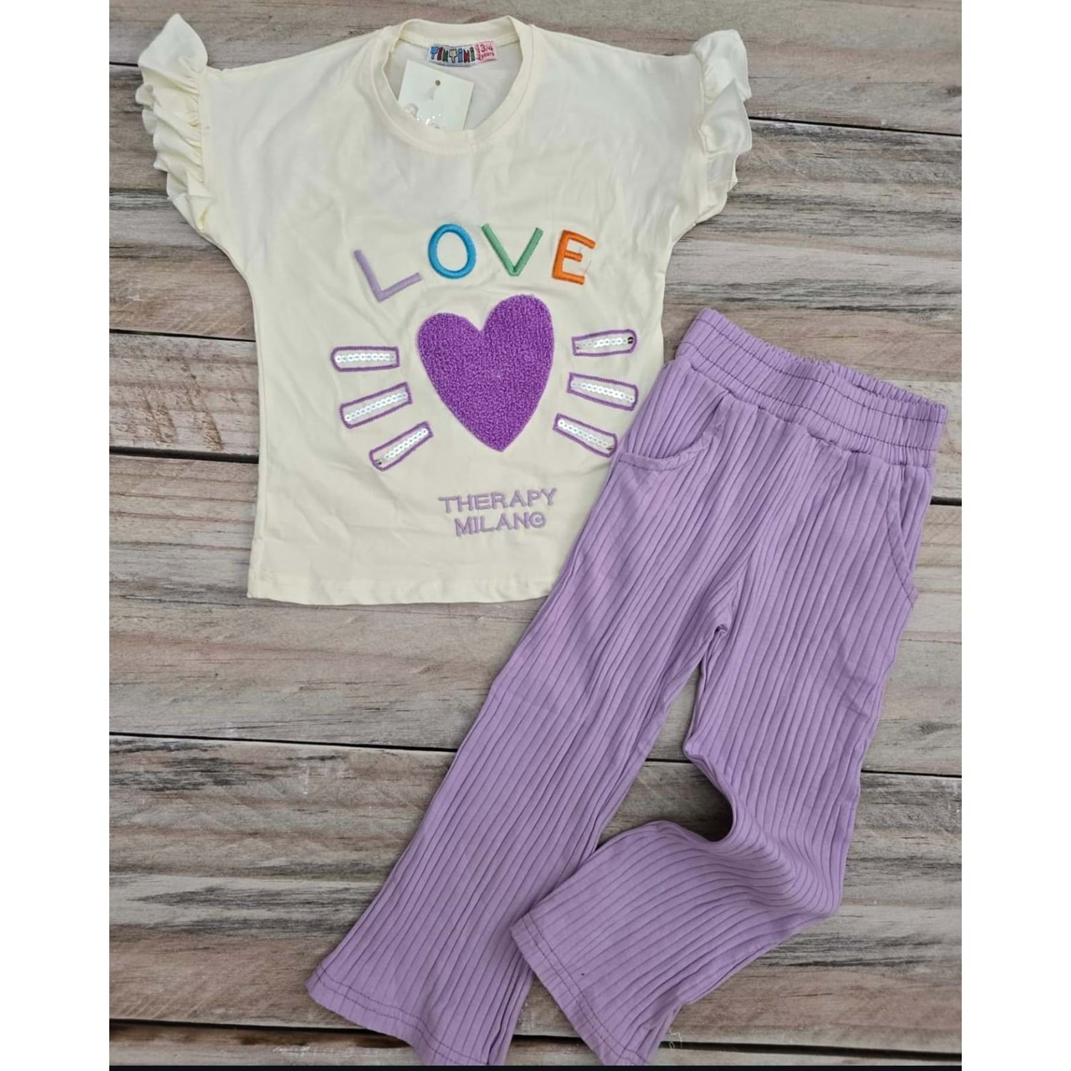 (3-10) Yaş LOVE DESENLİ TAYTLI TAKIM - MOR - 6-7 YAŞ