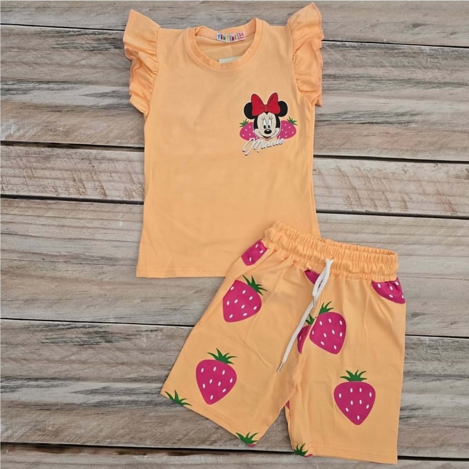 (3-10) Yaş TİNTİNİ ÇİLEKLİ MINNIE BASKILI ŞORTLU TAKIM - TURUNCU - 6-7 YAŞ