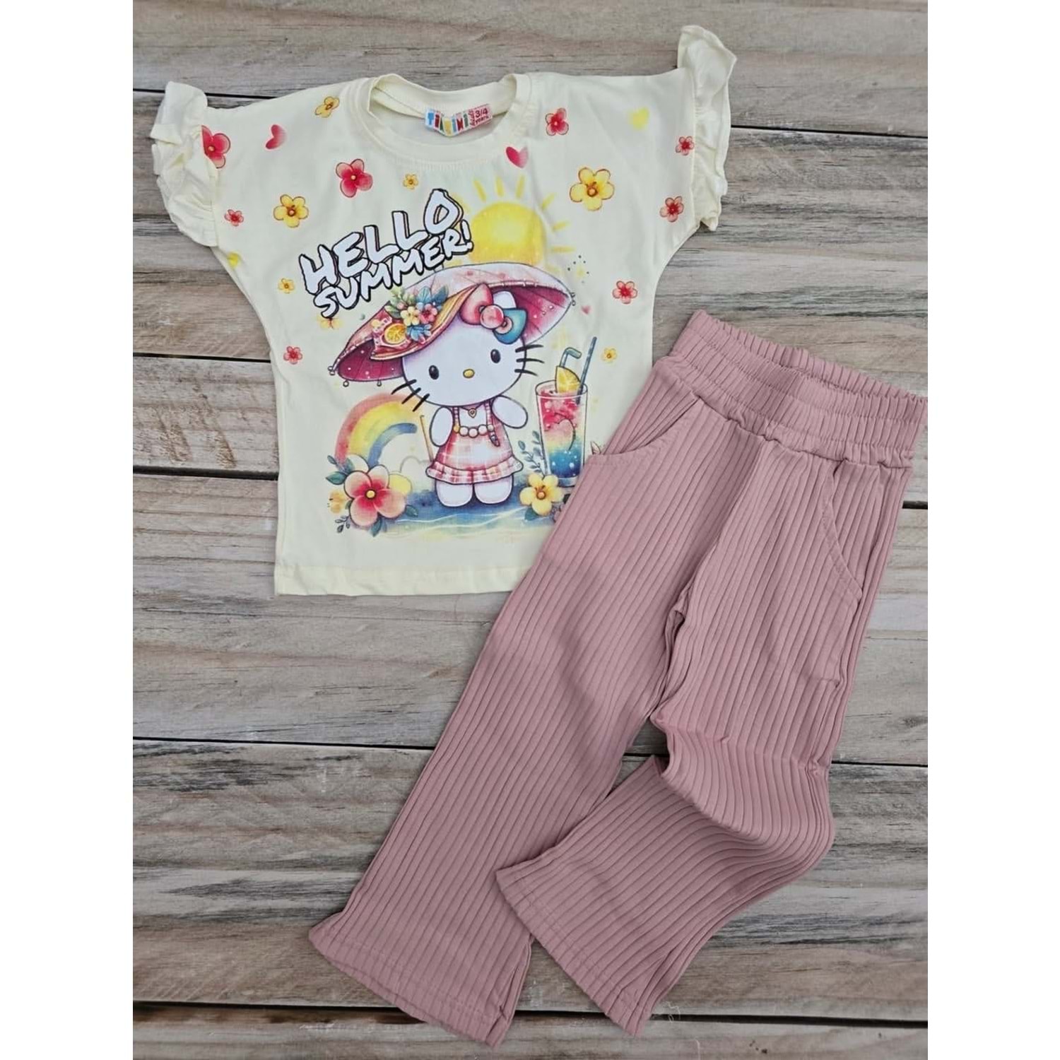 (3-10) yaş TİNTİNİ HELLO KITTY BASKILI TAYTLI TAKIM - GÜL KURUSU - 5-6 YAŞ