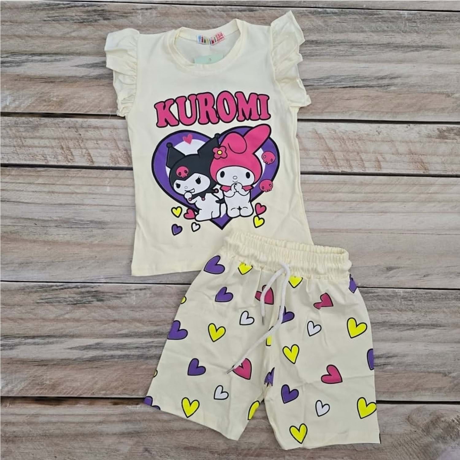 (3-10) Yaş TİNTİNİ KUROMİ BASKILI ŞORTLU TAKIM - KREM - 6-7 YAŞ