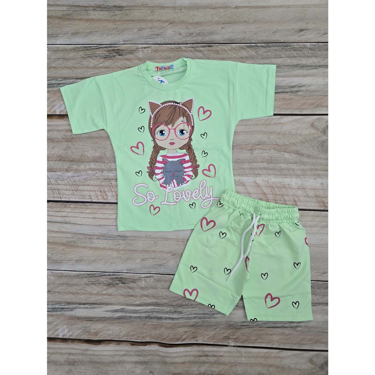 (3-10) Yaş TİNTİNİ SO LOVELY BASKILI ŞORTLU TAKIM - YEŞİL - 3-4 YAŞ