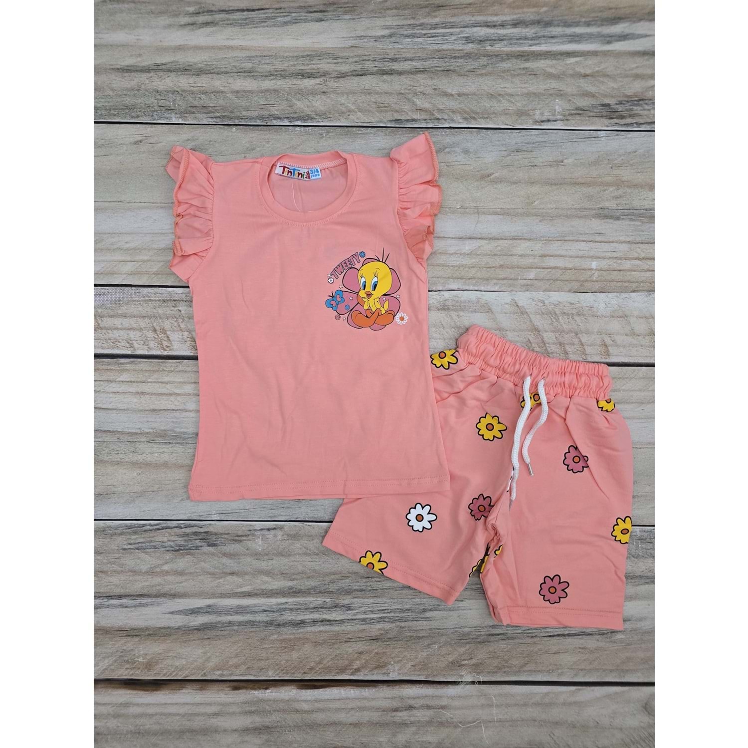 (3-10) Yaş TİNTİNİ TWEETY BASKILI ŞORTLU TAKIM - PUDRA - 3-4 YAŞ