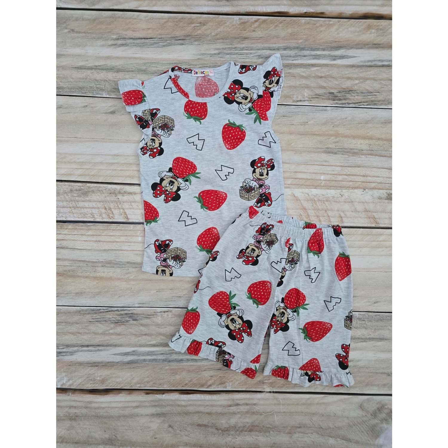 (5-10) Yaş DEFNECAN ÇİLEKLİ MINNIE BASKILI ŞORTLU TAKIM - DESENLİ - 7-8 YAŞ