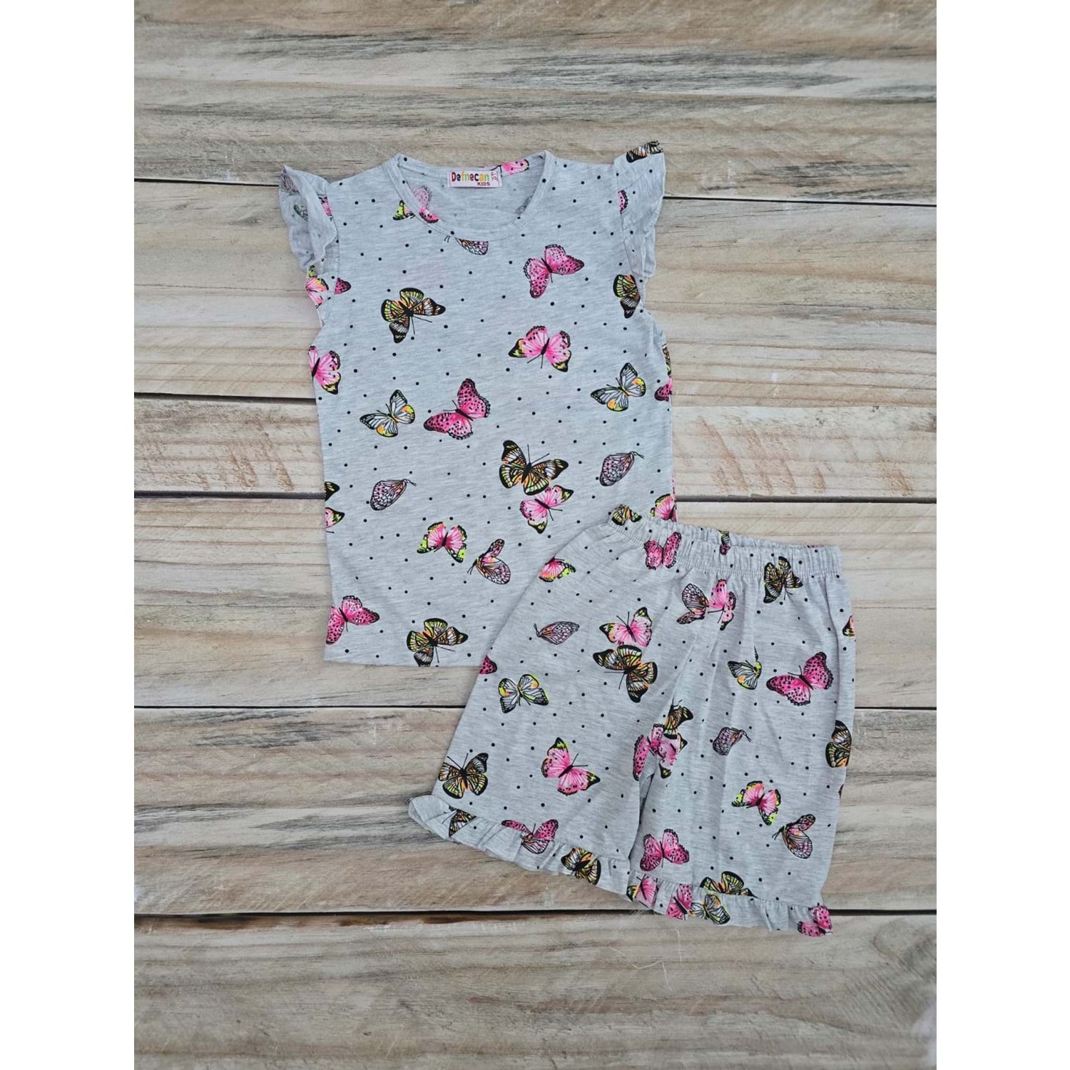 (5-10) Yaş DEFNECAN KELEBEK BASKILI ŞORTLU TAKIM - DESENLİ - 7-8 YAŞ